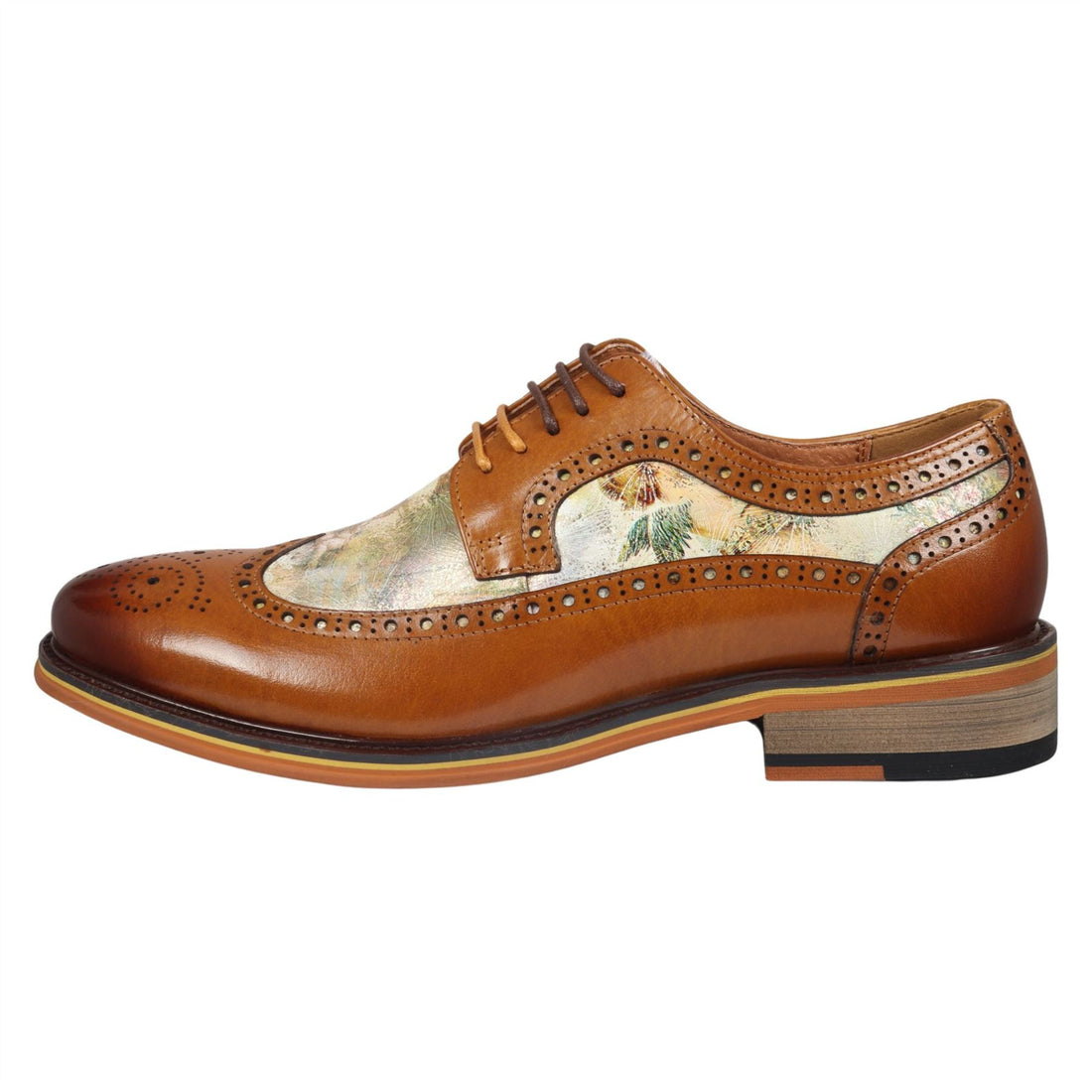 Men's Shoes Brown Iconic Print Leather Oxford Brogue Lace Up Formal Dress Shoe