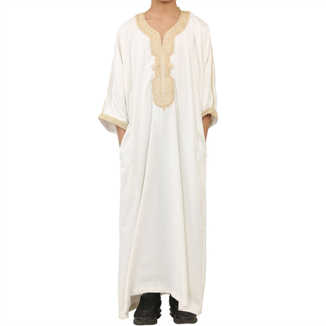 Boys Moroccan Thobe Gandoura Short Sleeve Jubba Islamic Clothing Kaftan Eid Robe Arab Embroidery