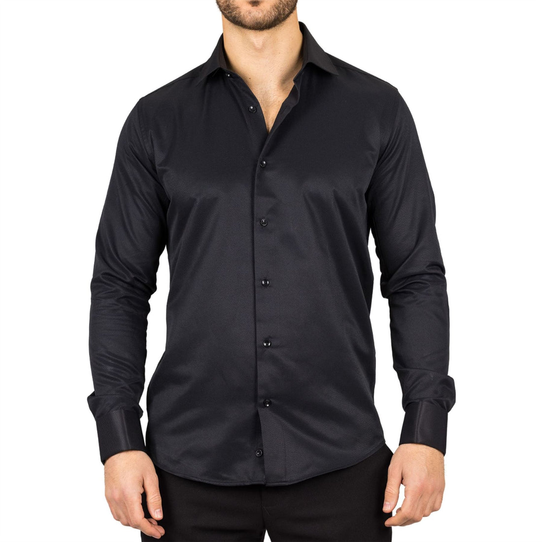 Men's Black Long Sleeve Regular Fit Double Cuff Twill Oxford Shirt