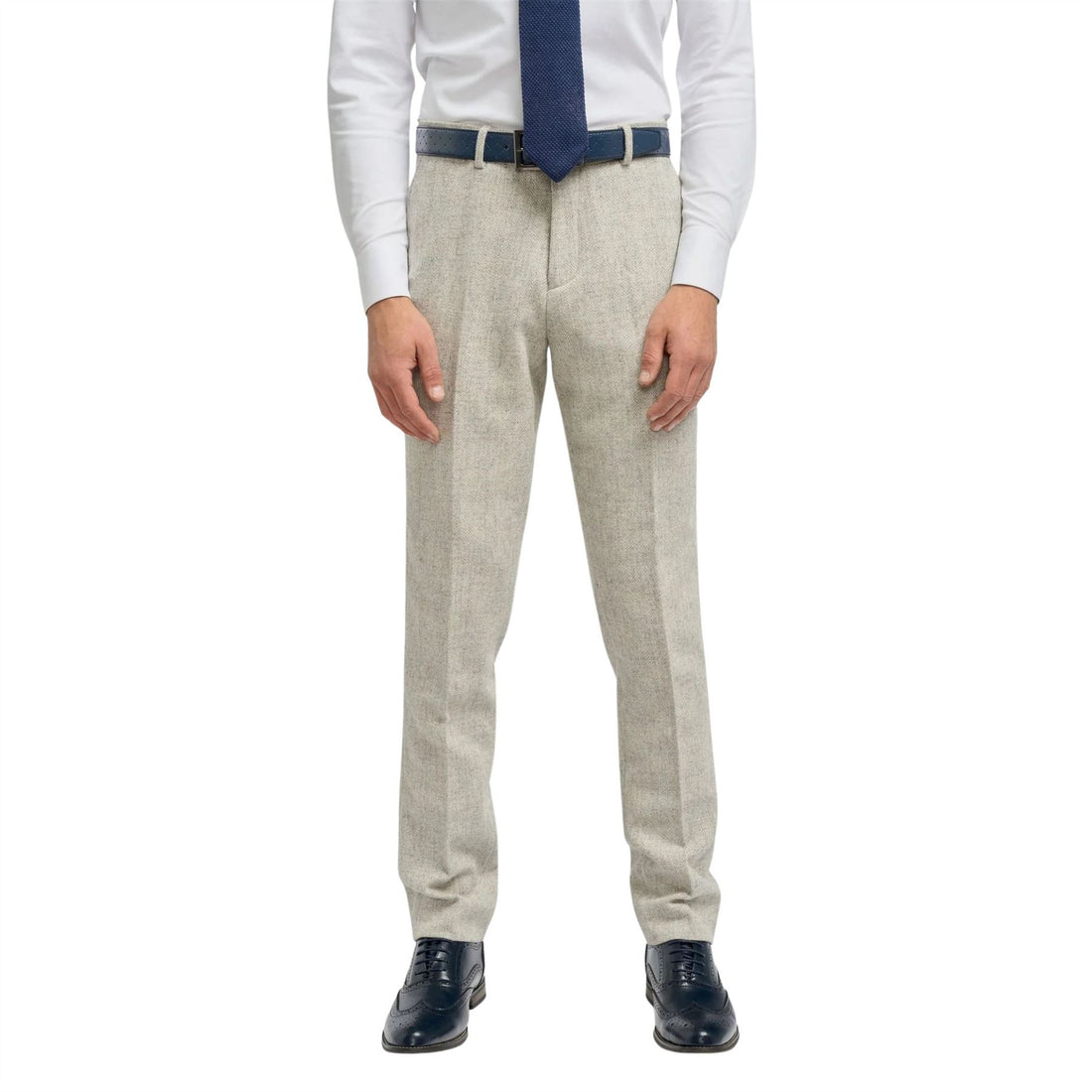 Thomas - Men's Grey Wool Blend Herringbone Tweed Trousers
