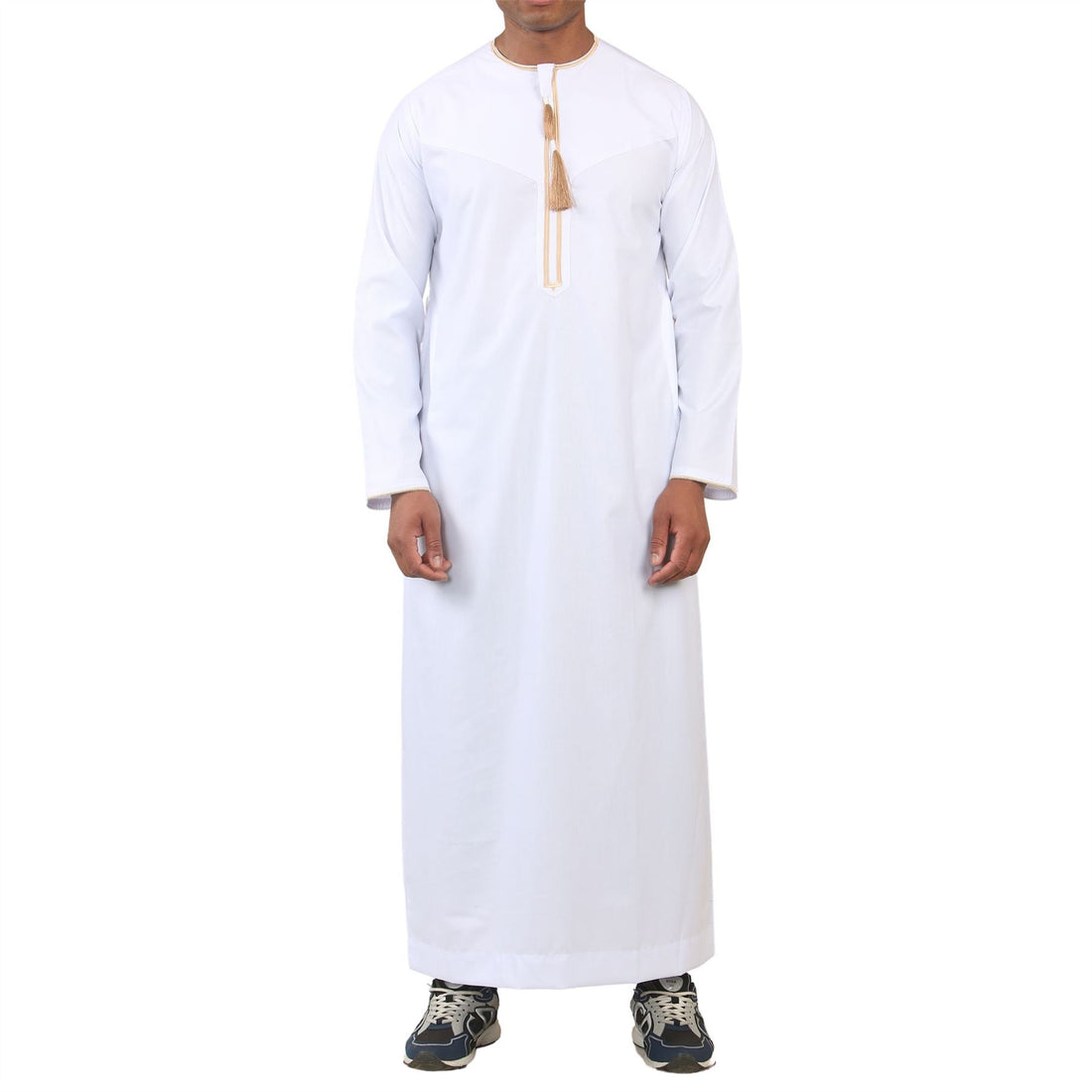 Men's Thobe Emirati Omani Jubba Islamic Clothing Muslim Kaftan Eid Robe Arab Gold Tassel Embroidery