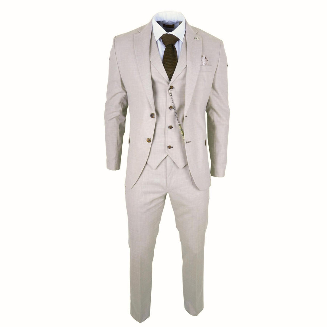 James - Men's 3 Piece Cream Tailored Fit Suit