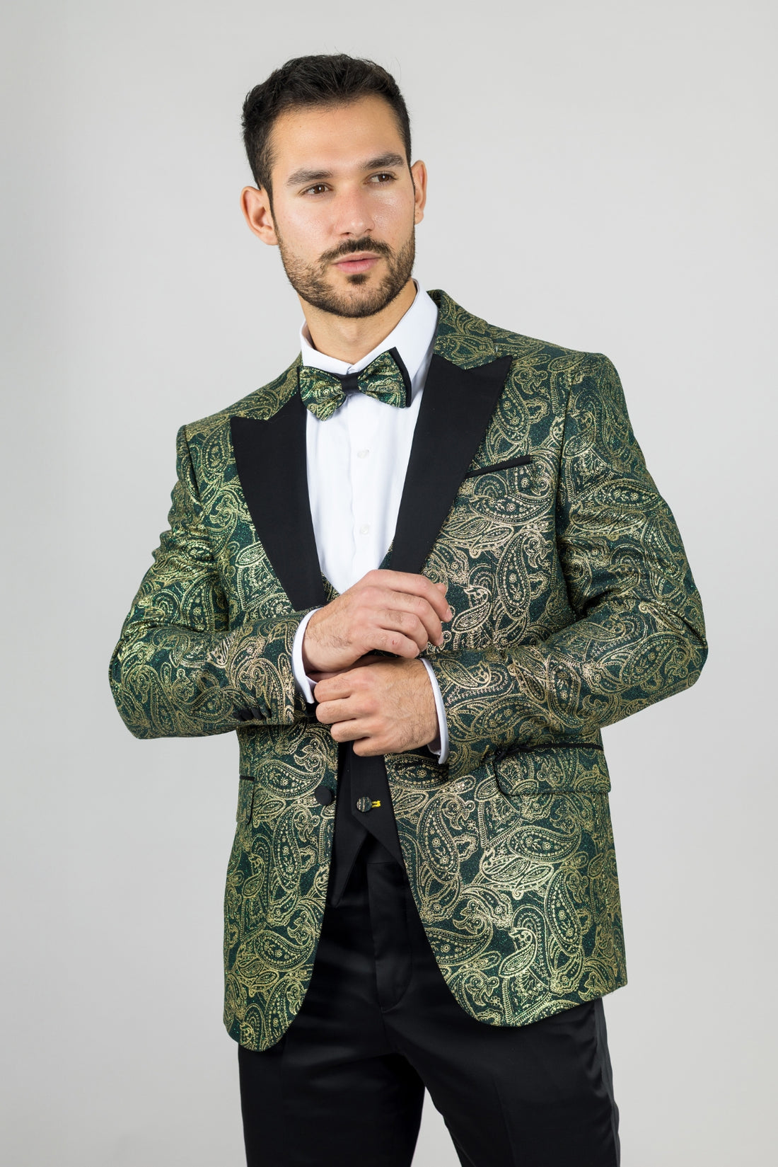 Men's Suit 3 Piece Green Paisley Tailored Fit Wedding Tuxedo