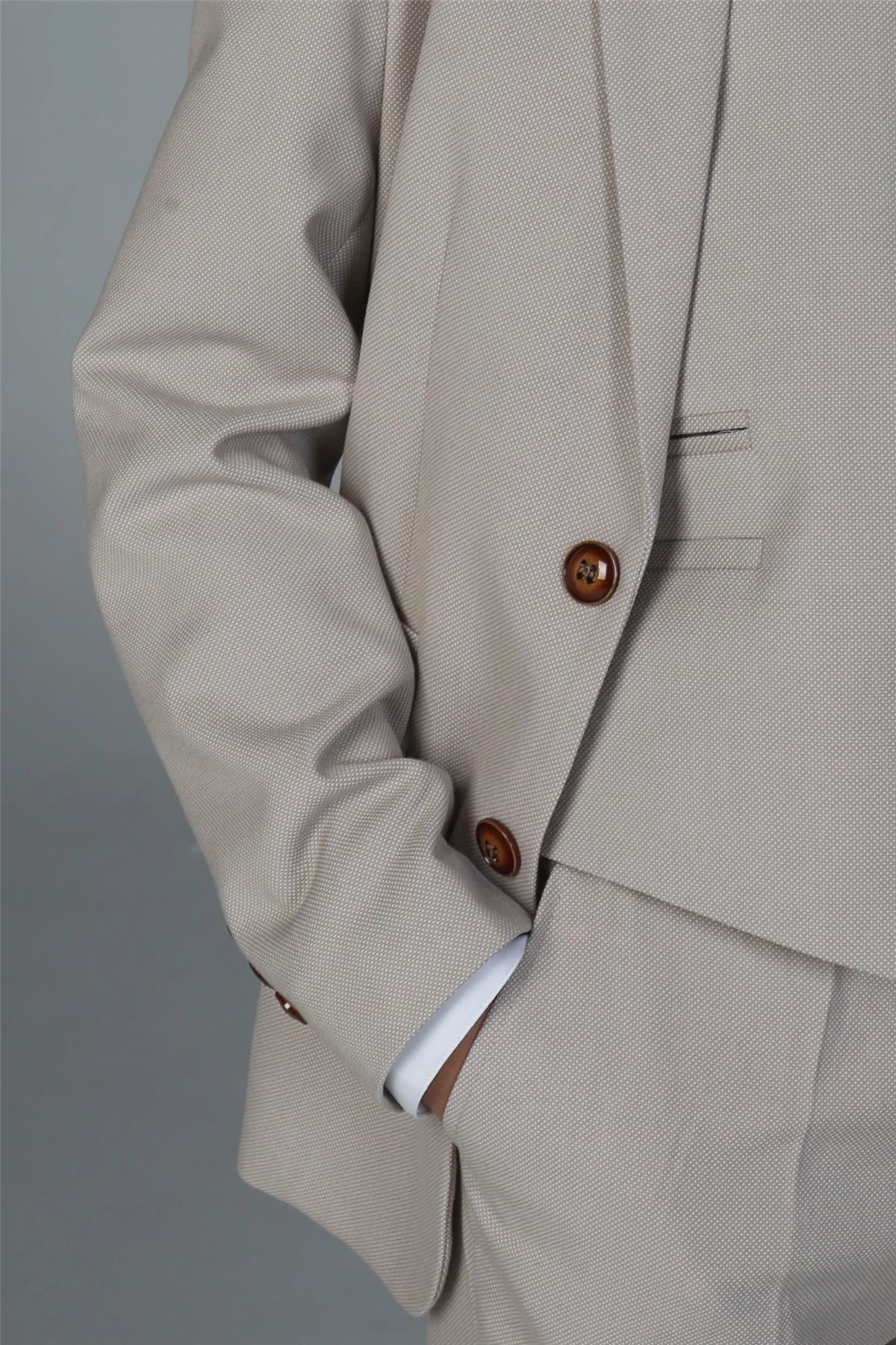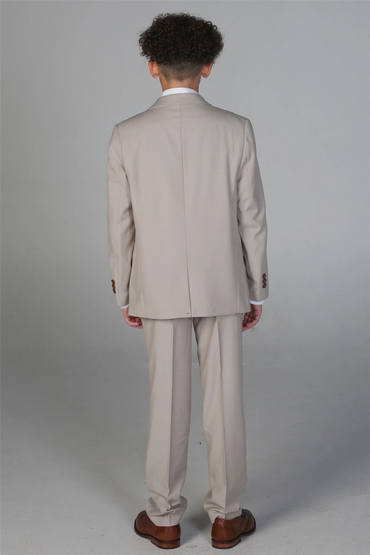 Boys 3 Piece Beige Suit Classic Birdseye Wedding