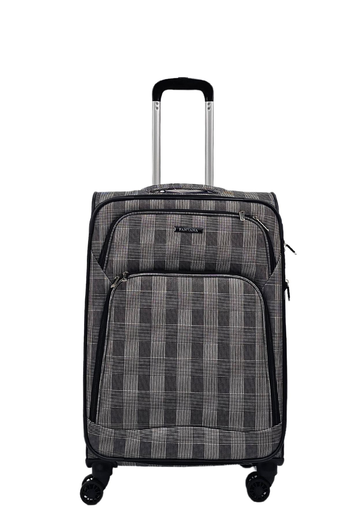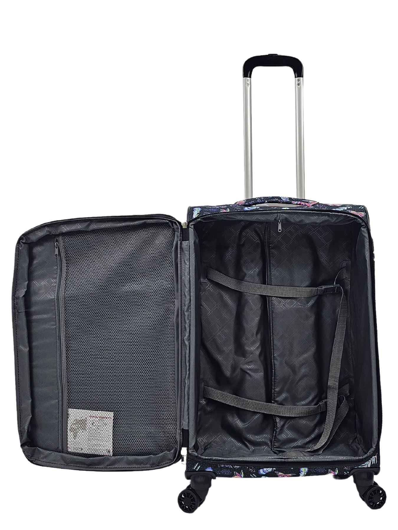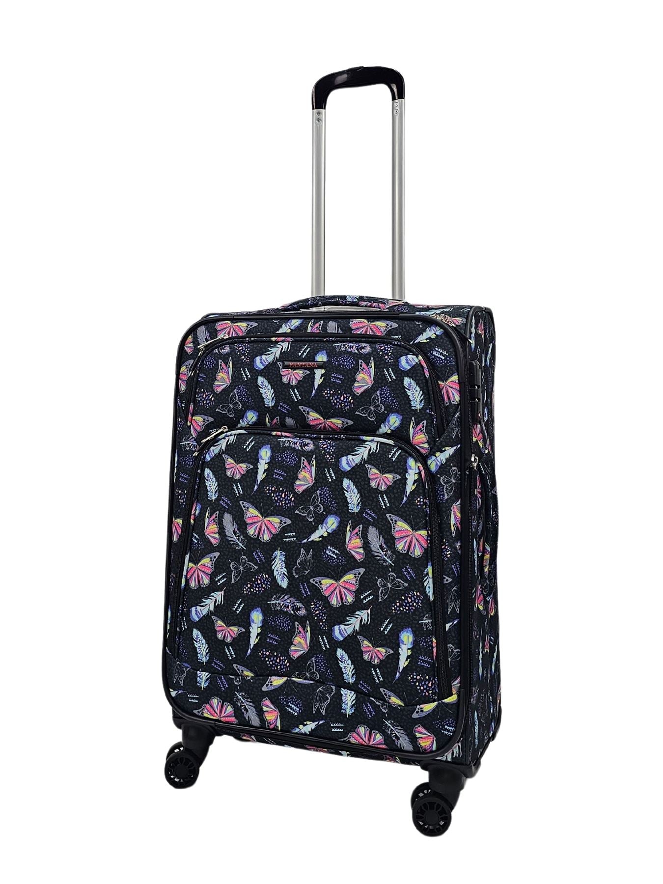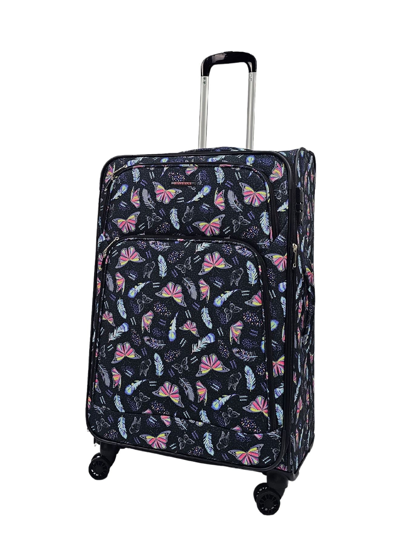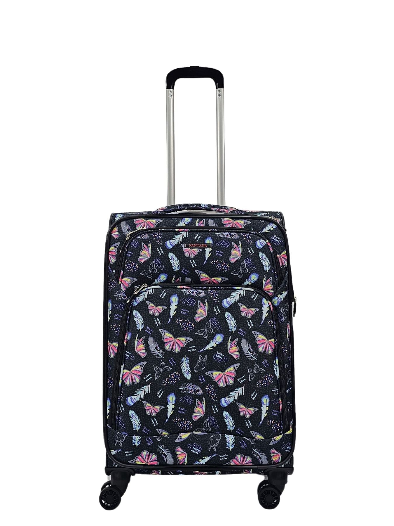 Butterfly Leaf Check Print Suitcase 4 Wheels Cabin Check In Hand Luggage Soft Shell Trolley