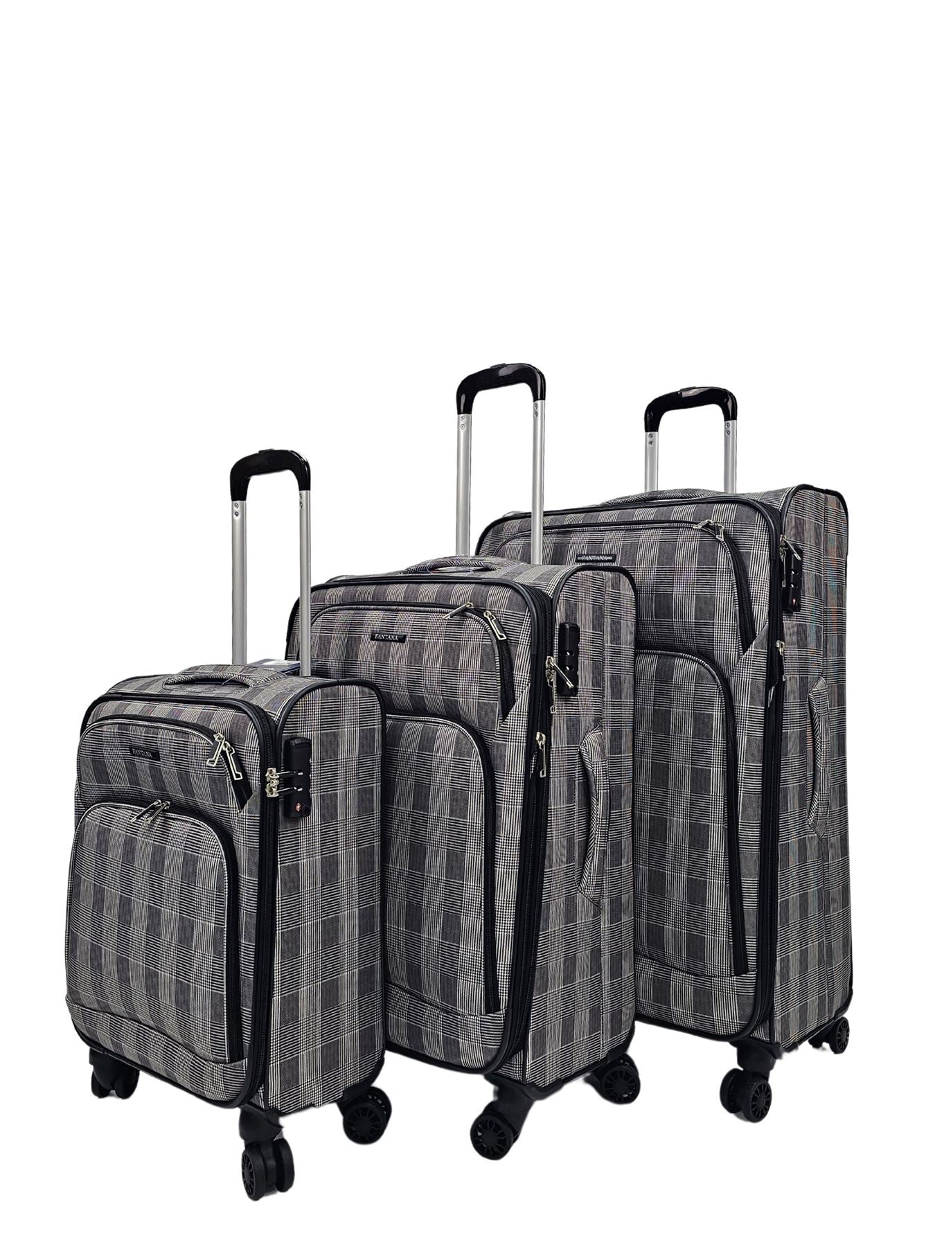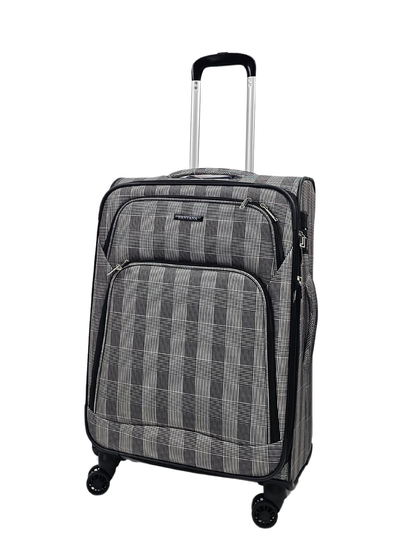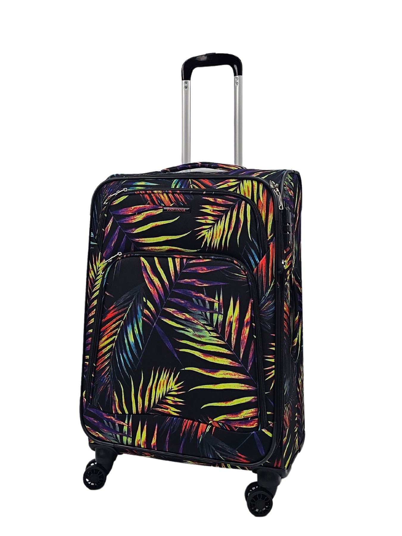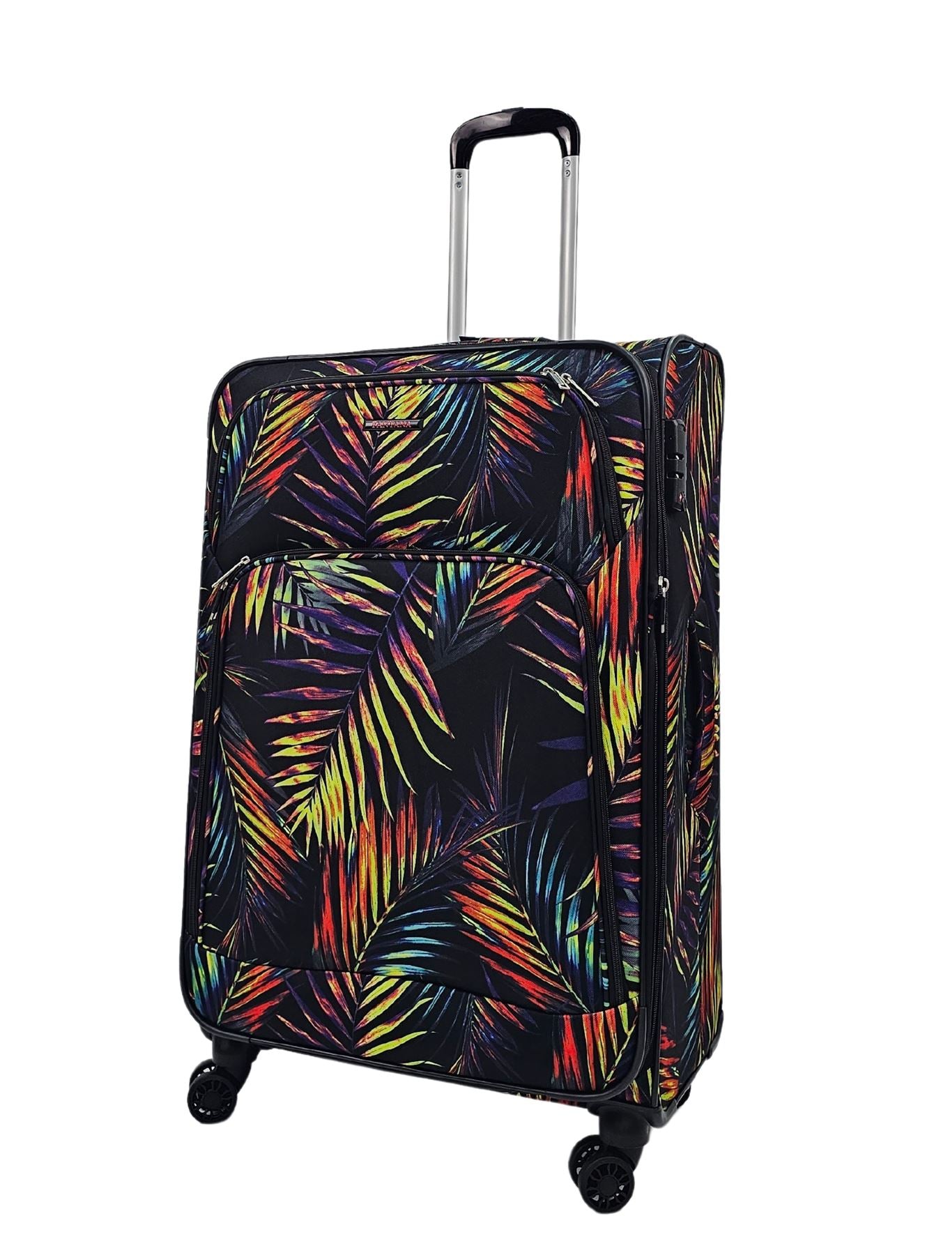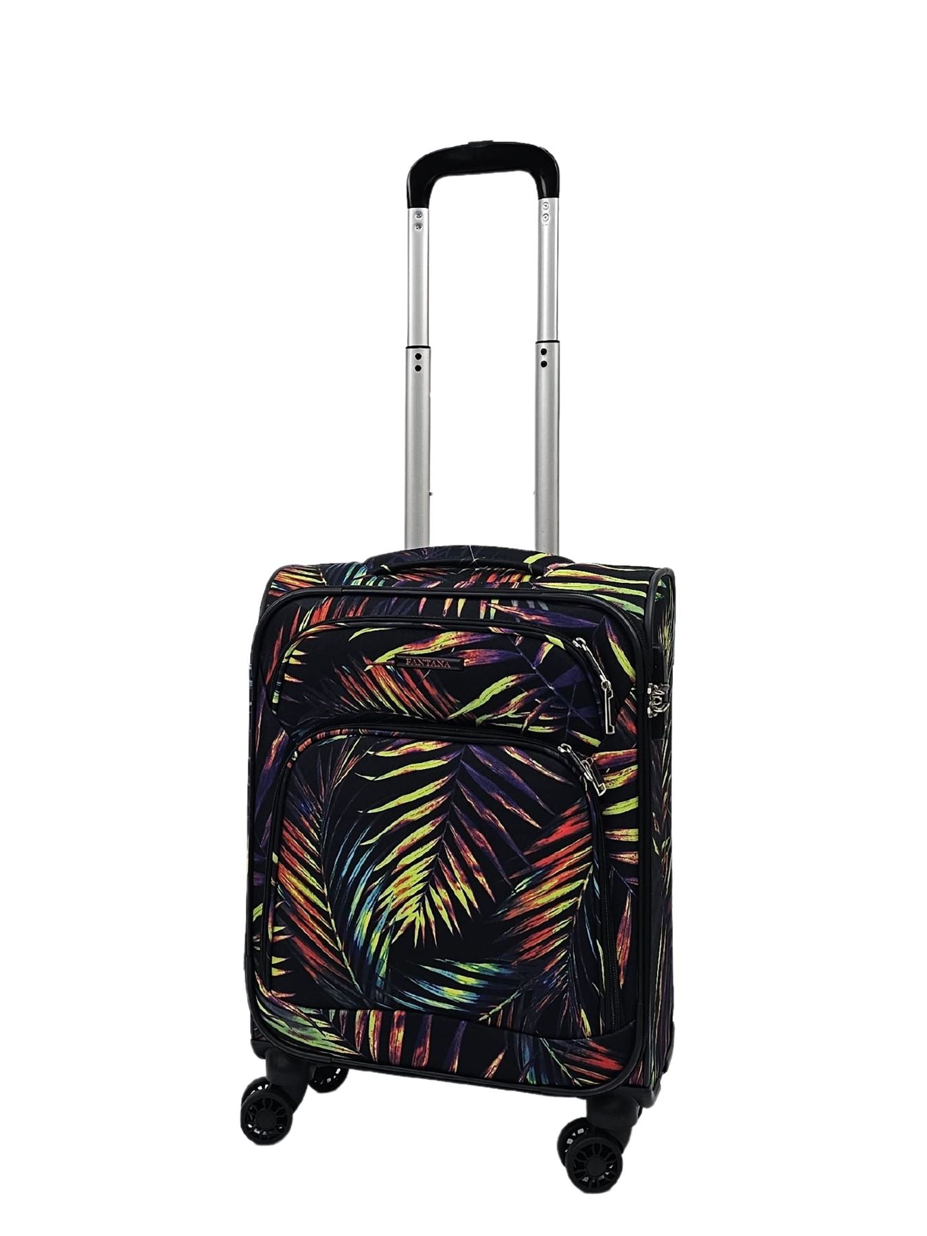 Butterfly Leaf Check Print Suitcase 4 Wheels Cabin Check In Hand Luggage Soft Shell Trolley