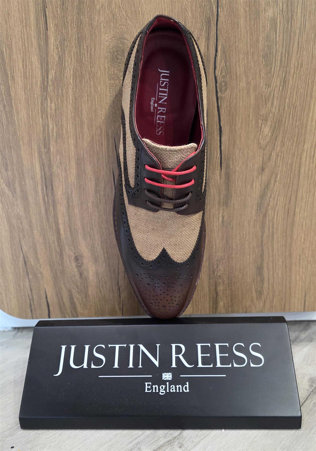 Cole - Men's Brown Leather Canvas Detailing Brogue Shoes