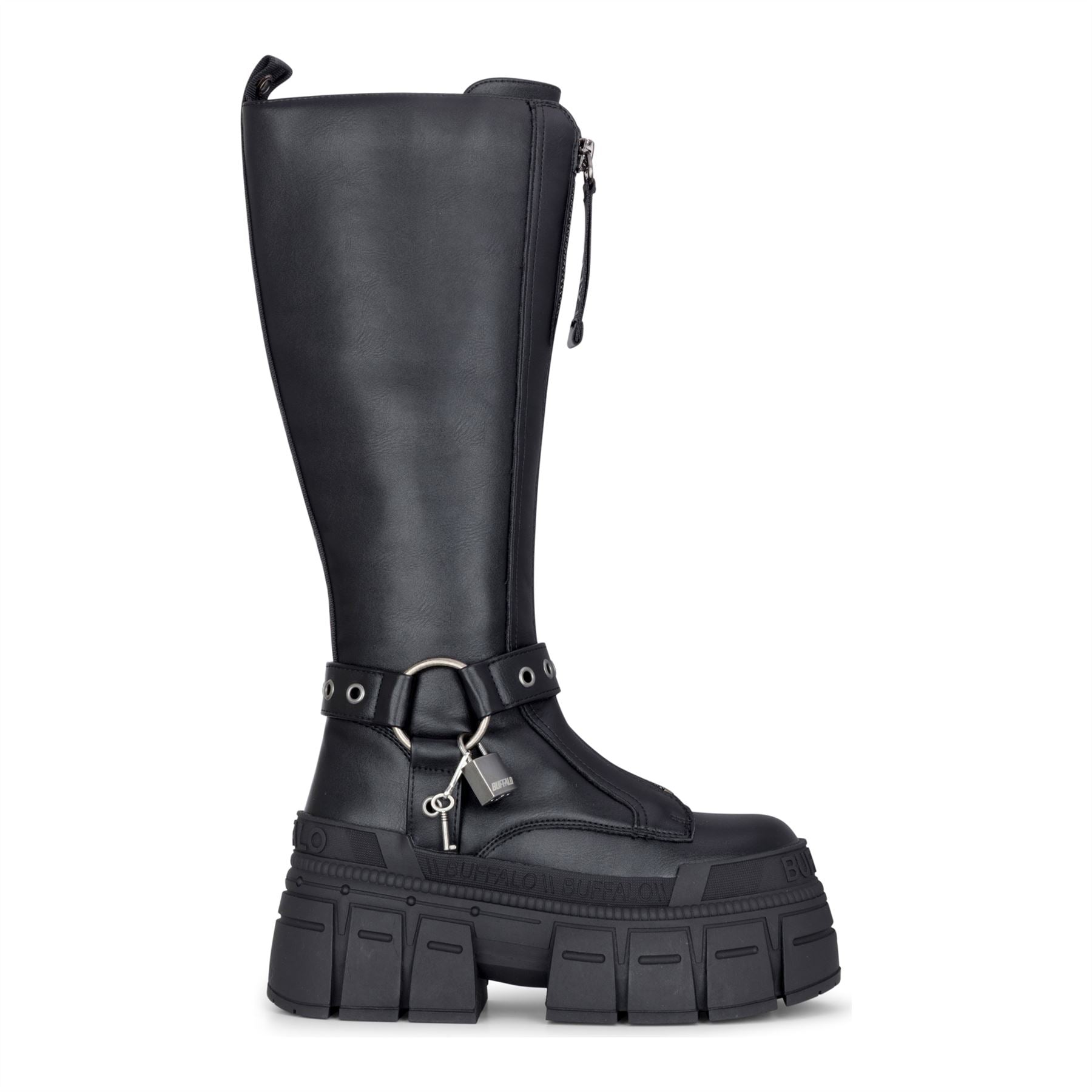 GOSPHER BIKER HI - Women’s Black Platform Knee-High Boots