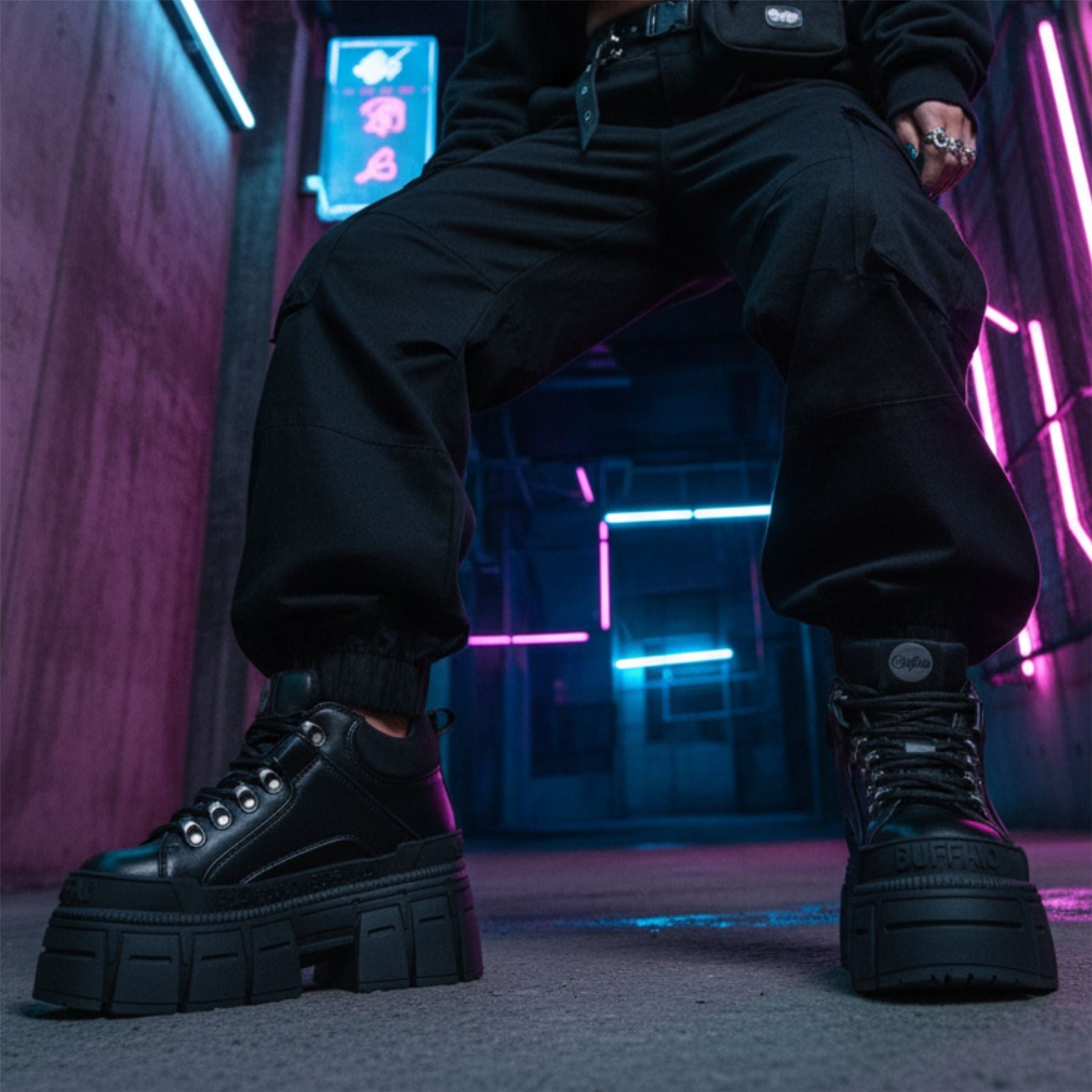 GOSPHER HIKE LO - Women’s Black Platform Chunky Ankle Boots