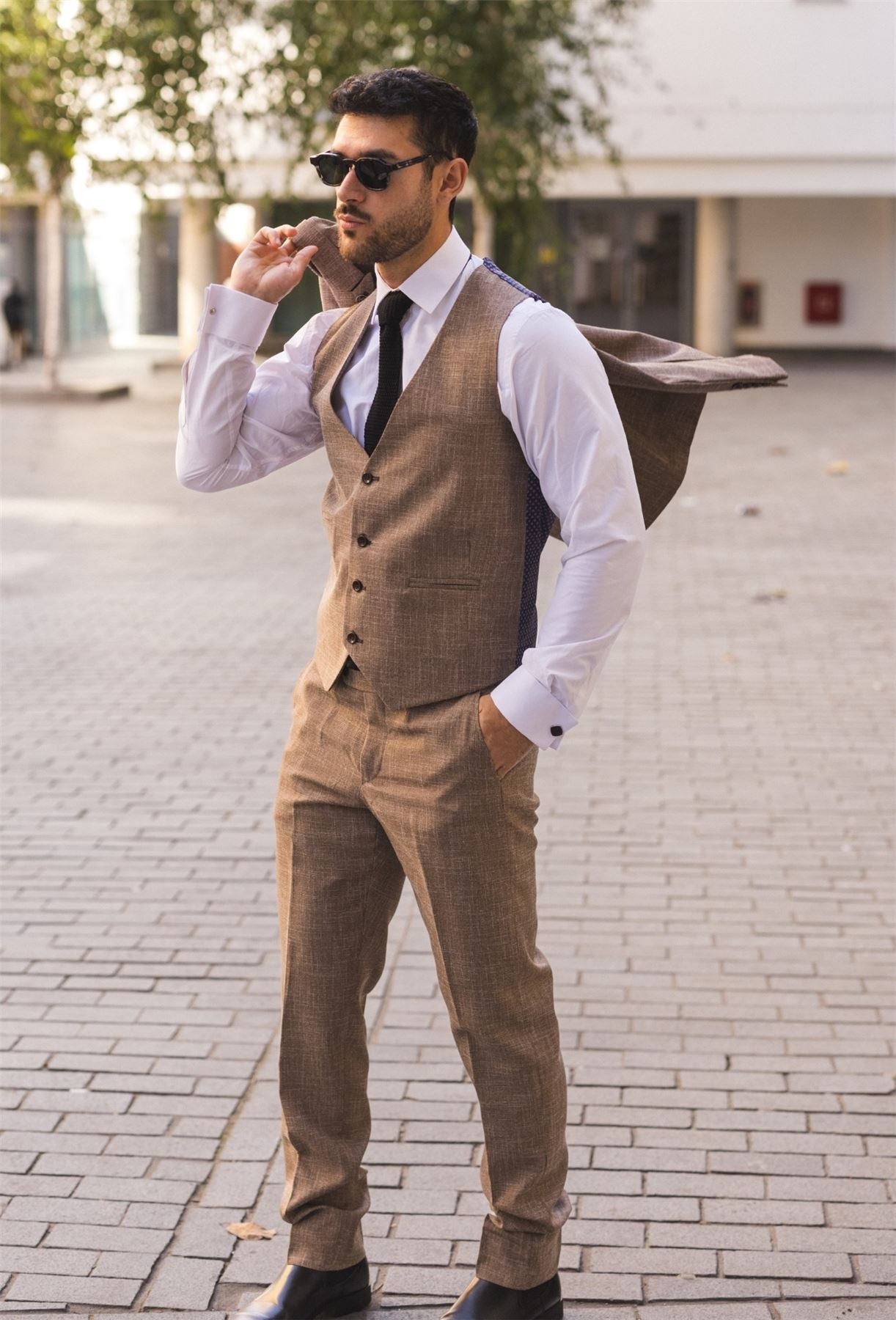 IM33 - Men's 3 Piece Brown Tailored Fit Suit