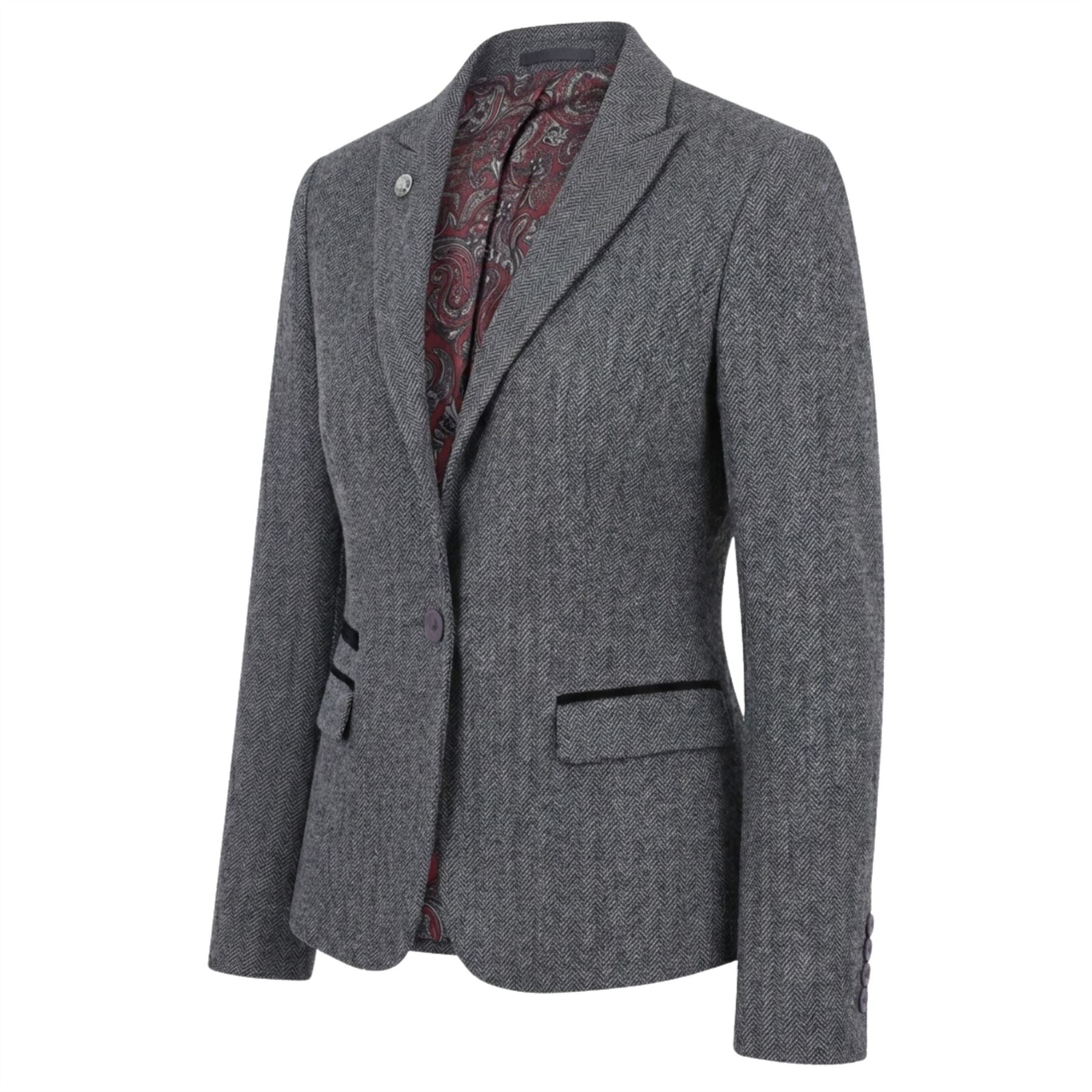 IMW-03 - Women's Grey Tweed Herringbone Blazer Waistcoat