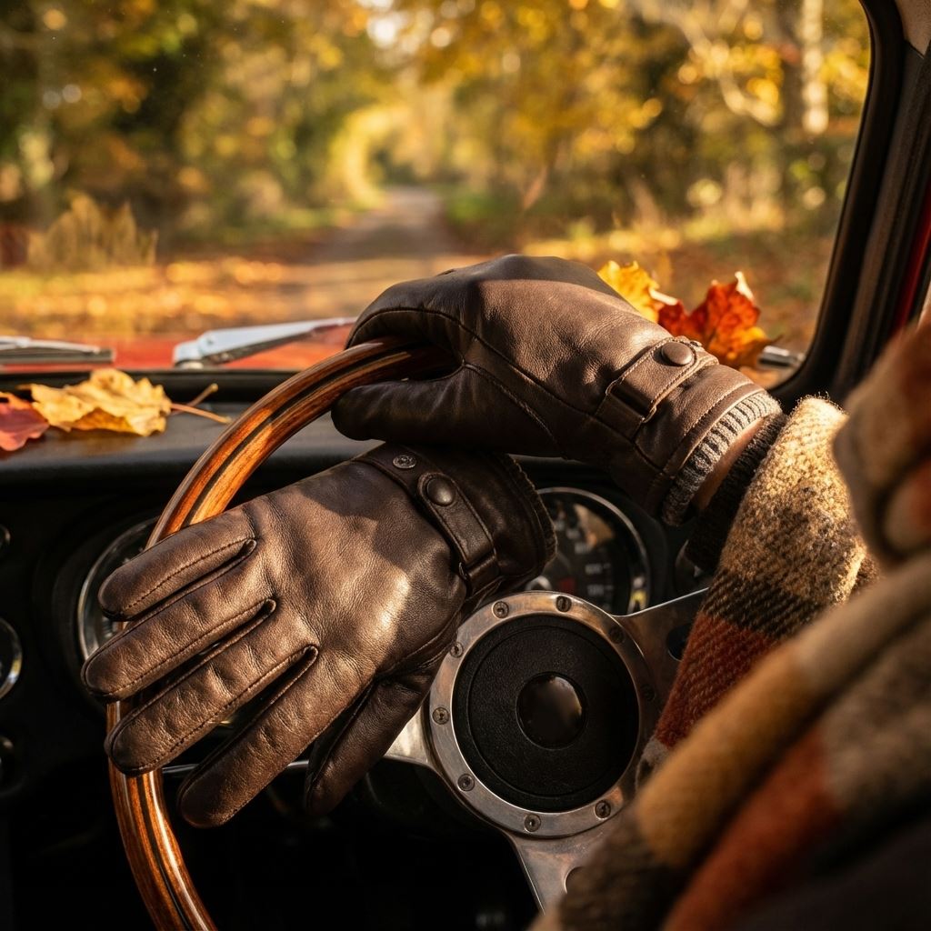 Men’s Genuine Leather Ribbed Knit Cuff Gloves