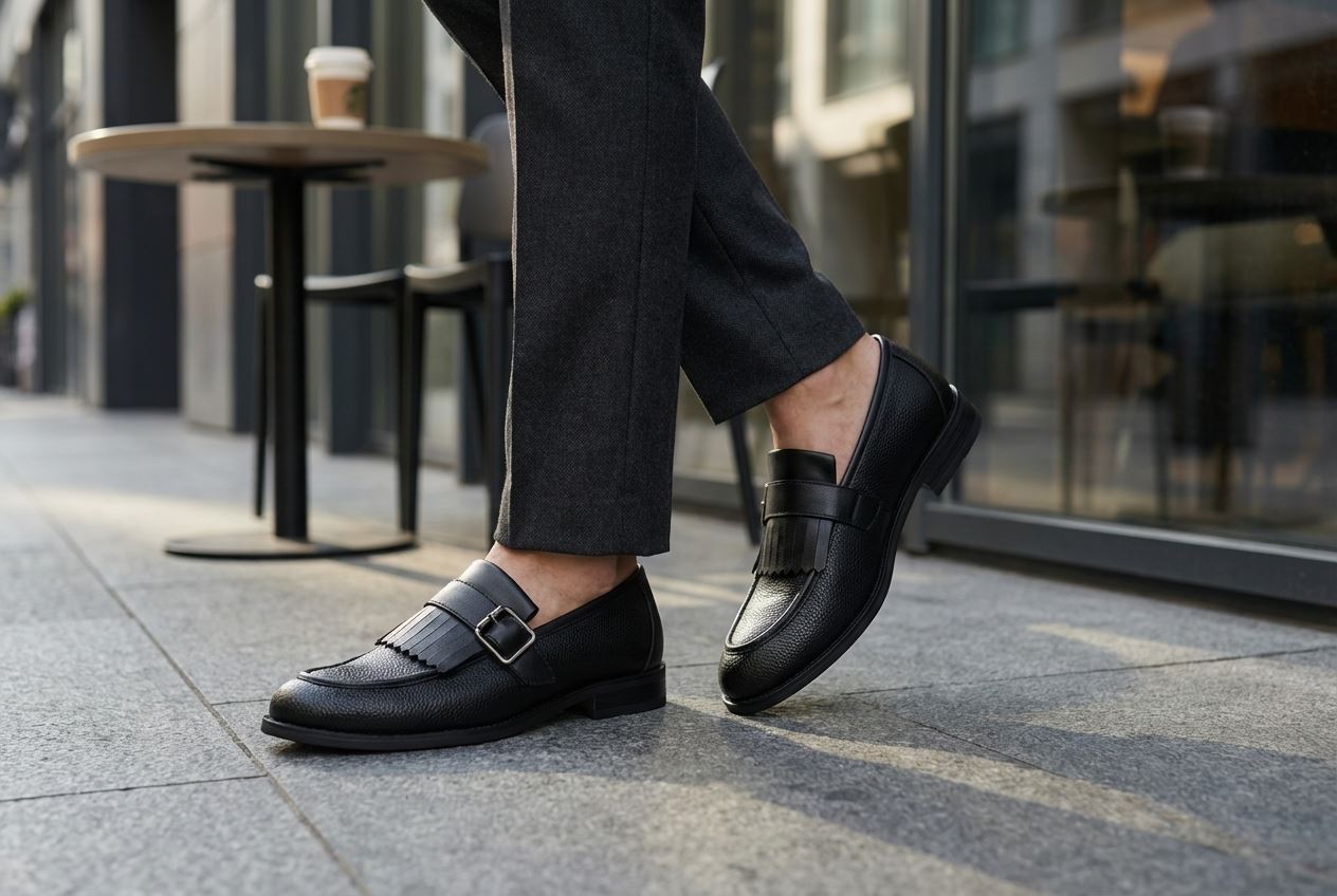 * Monk Strap Design: Features a fringe detail paired with a sleek side-buckle monk strap, blending traditional and contemporary elements
