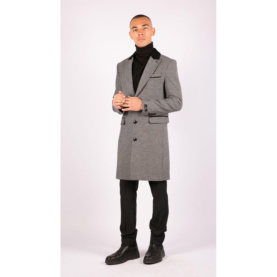 Mens 3/4 Long Overcoat Jacket Herringbone Tweed Coat Peaky Blinders Fit