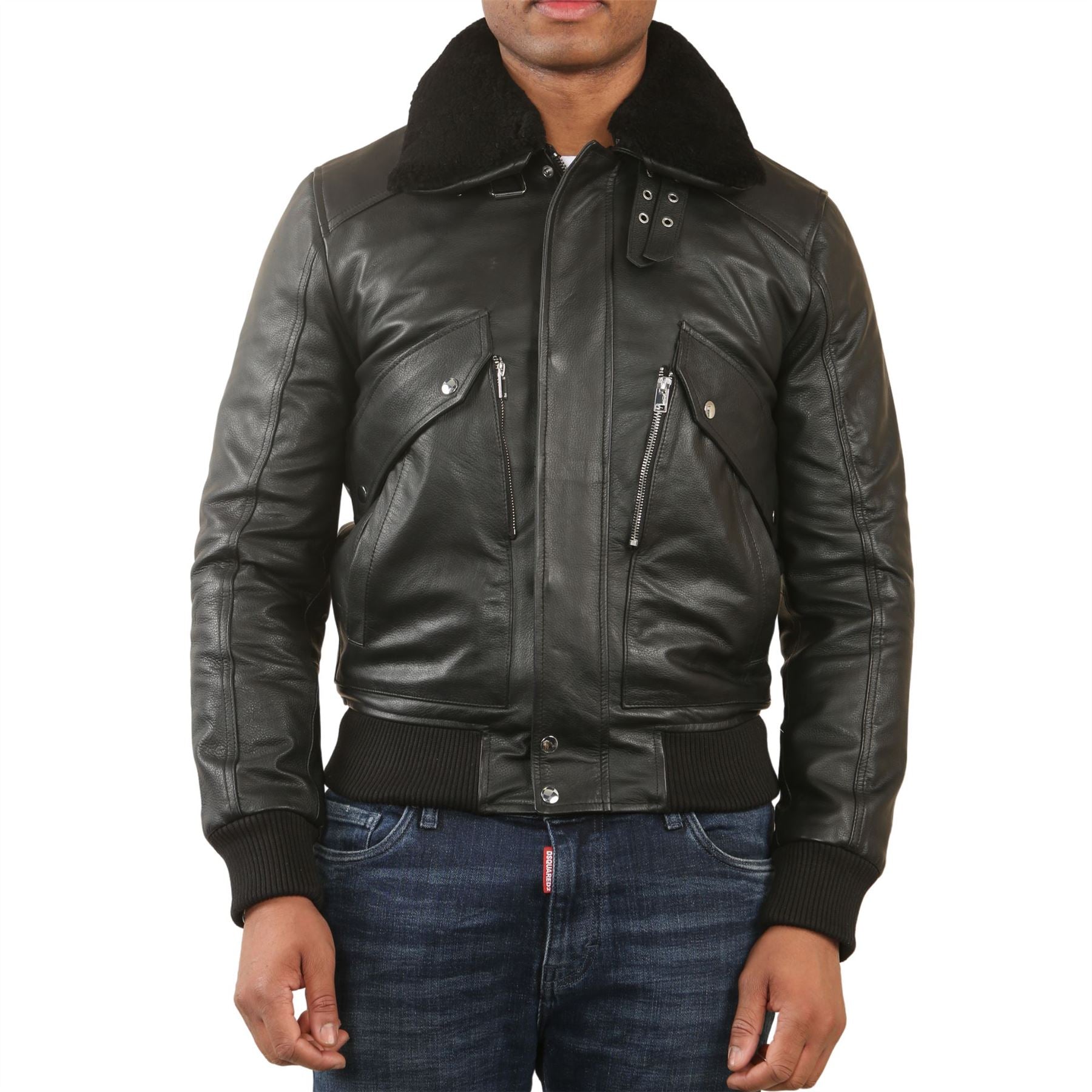 Men's Black Cowhide Aviator Bomber Leather Jacket