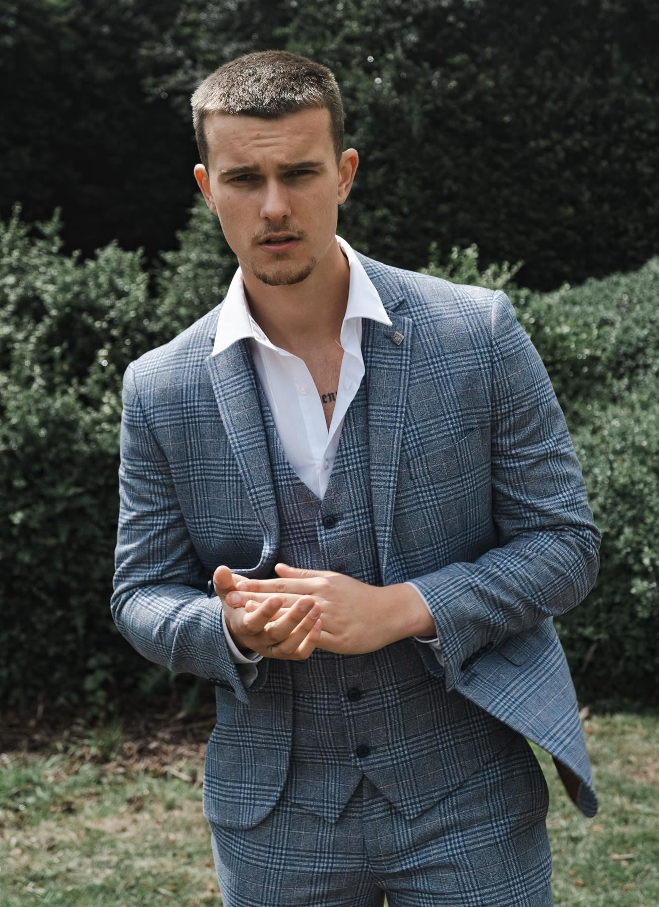 * This suit comes complete in 4 pieces which includes the blazer, waistcoat, trousers & pocket square as displayed