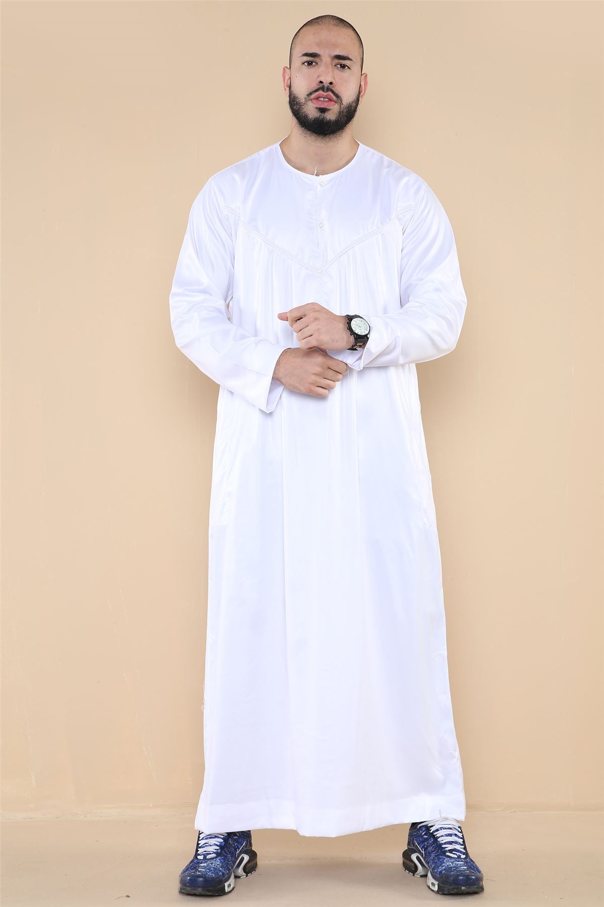 Mens Thobe Jubba Islamic Clothing Muslim Kaftan Emirati Omani Robe Satin Shiny