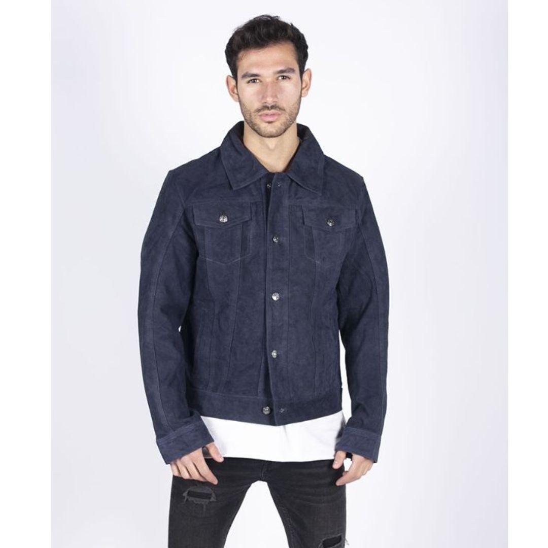 Mens Genuine Suede Jacket Leather Jeans Denim Short Mens Biker Classic VIntage