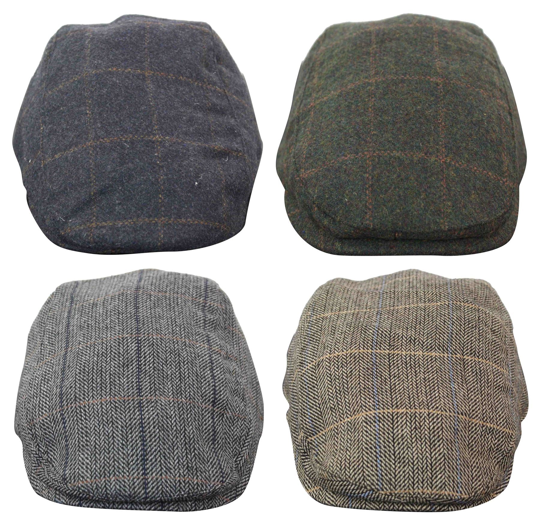 Mens Herringbone Tweed Wool Check Grandad Flat Caps Hats Vintage Green Grey Blue Brown