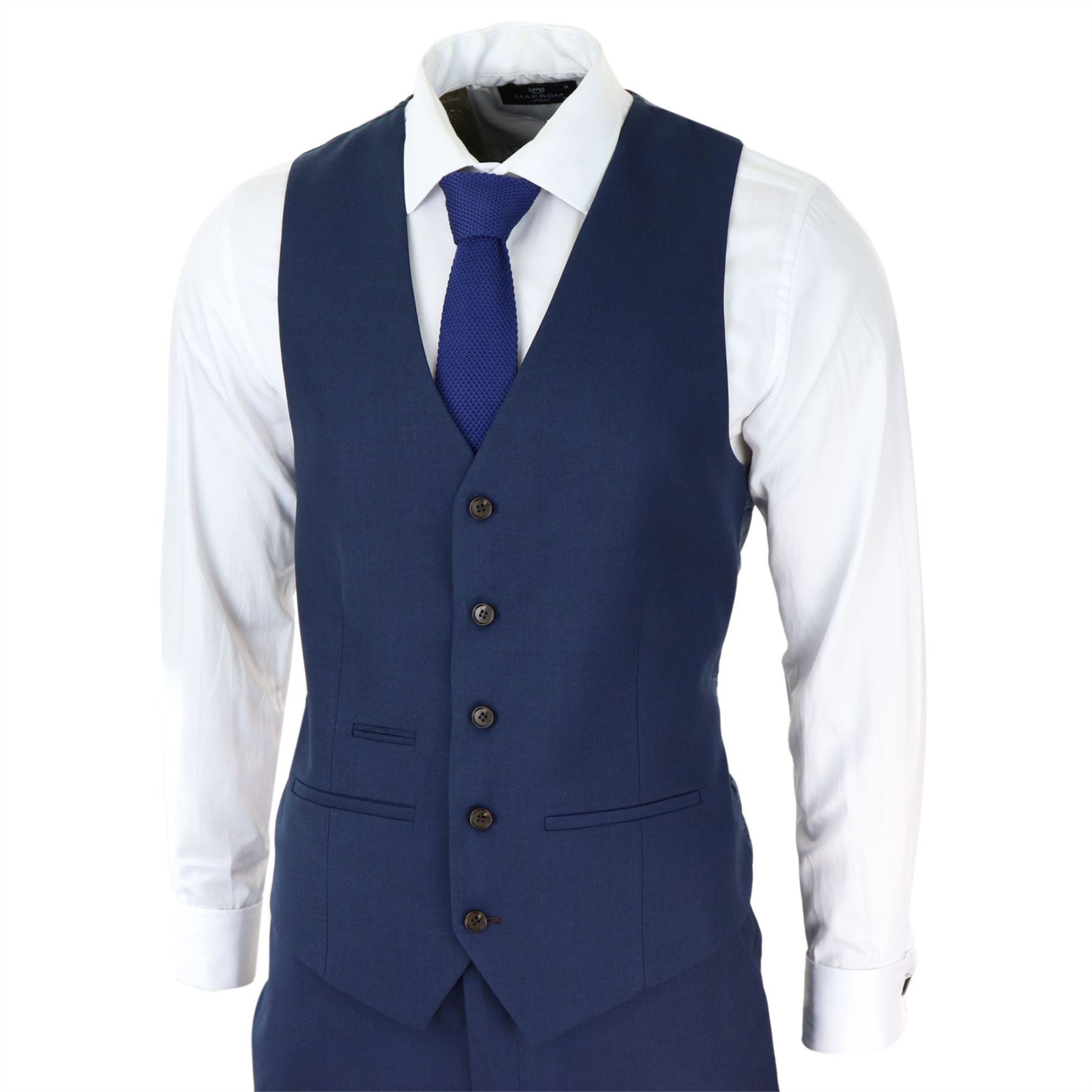 Mens Navy 3 Piece Suit Tailored Fit Smart Formal Classic Wedding Retro Vintage
