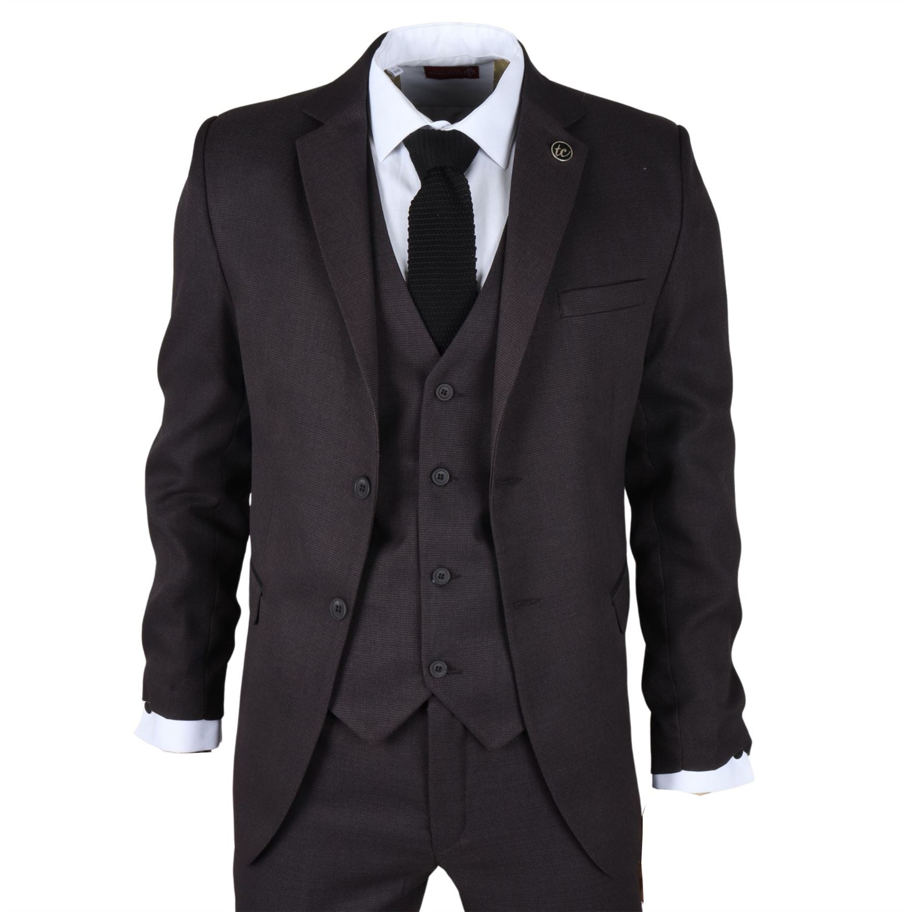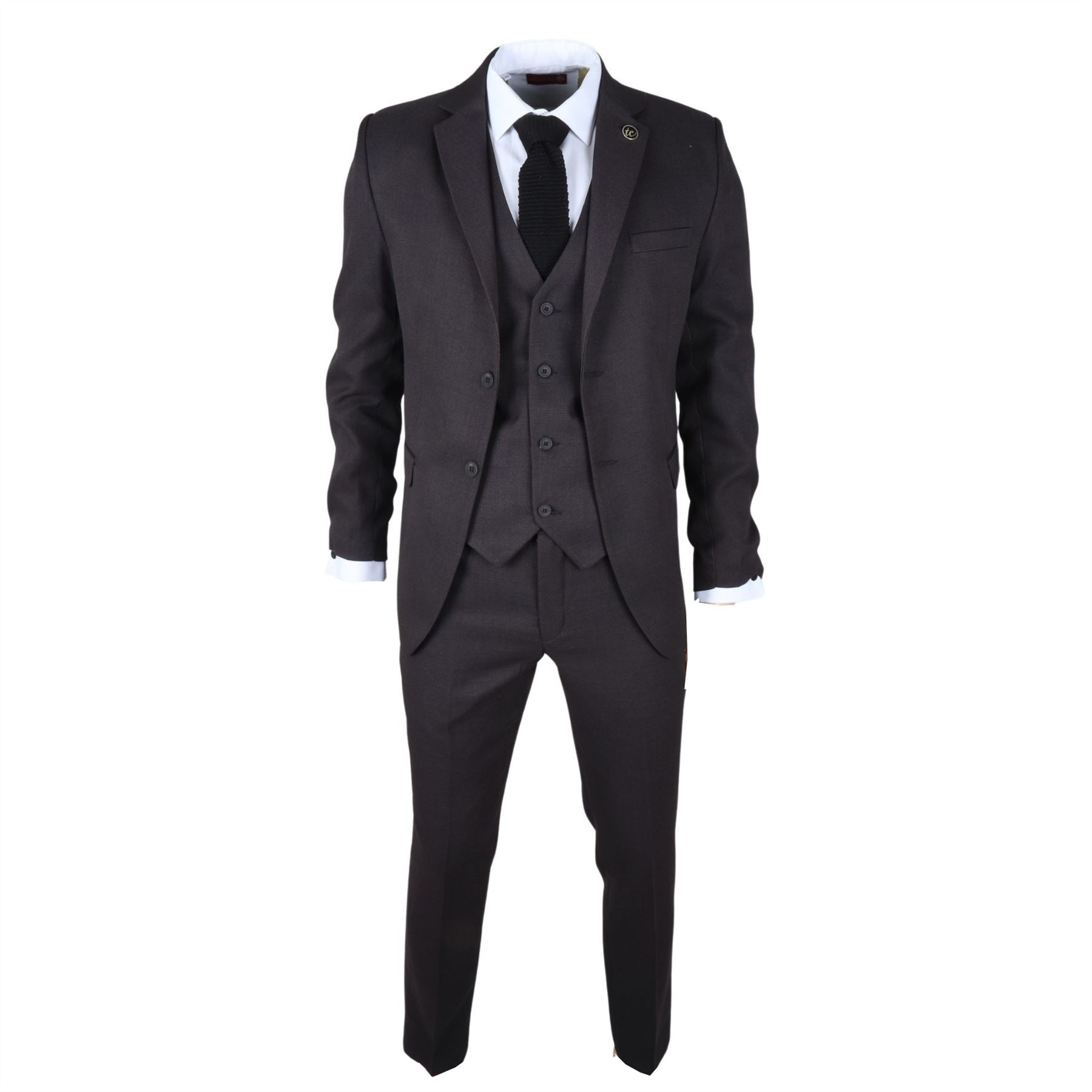 Men's Suit 3 Piece Charcoal Grey Classic Birdseye Wedding Formal Dress