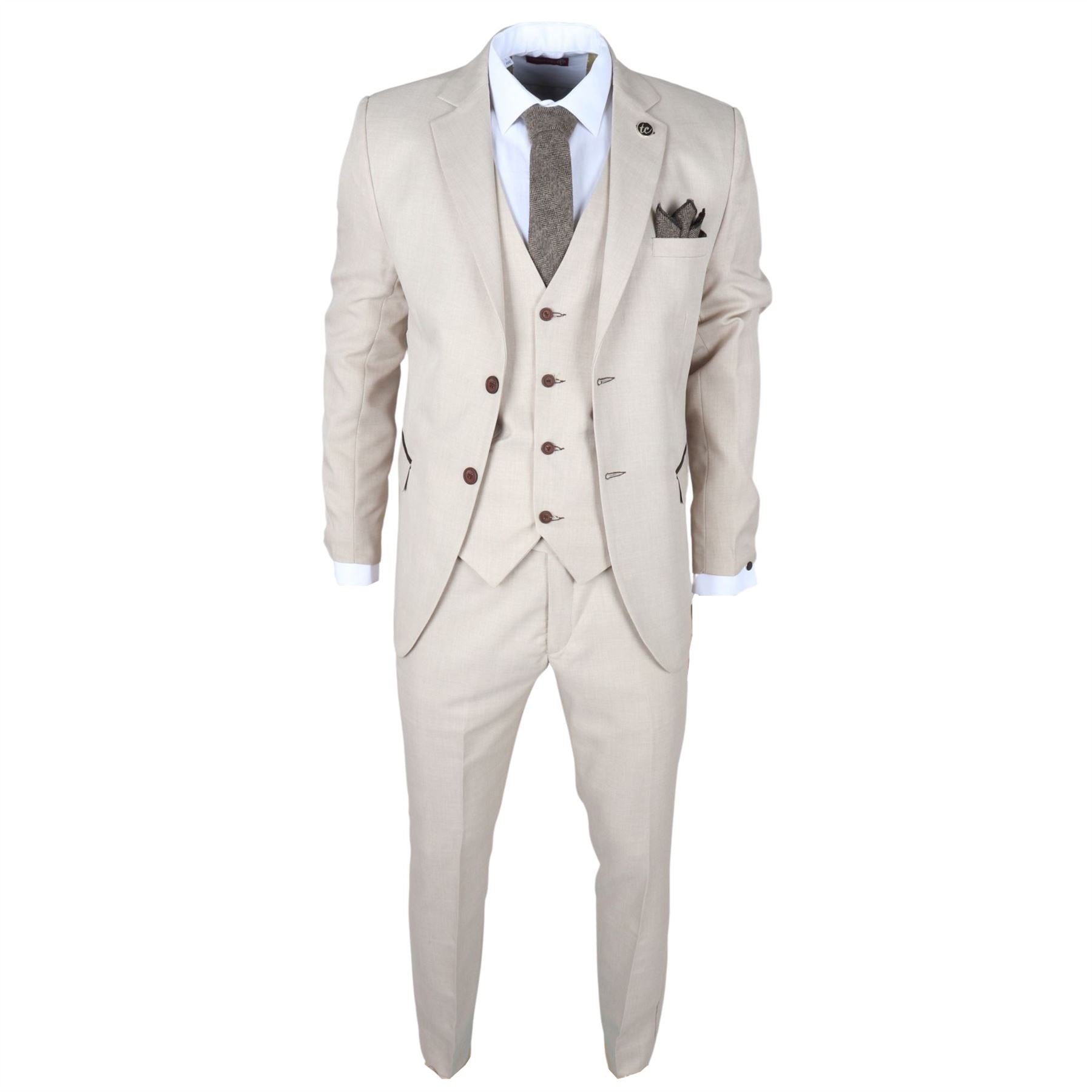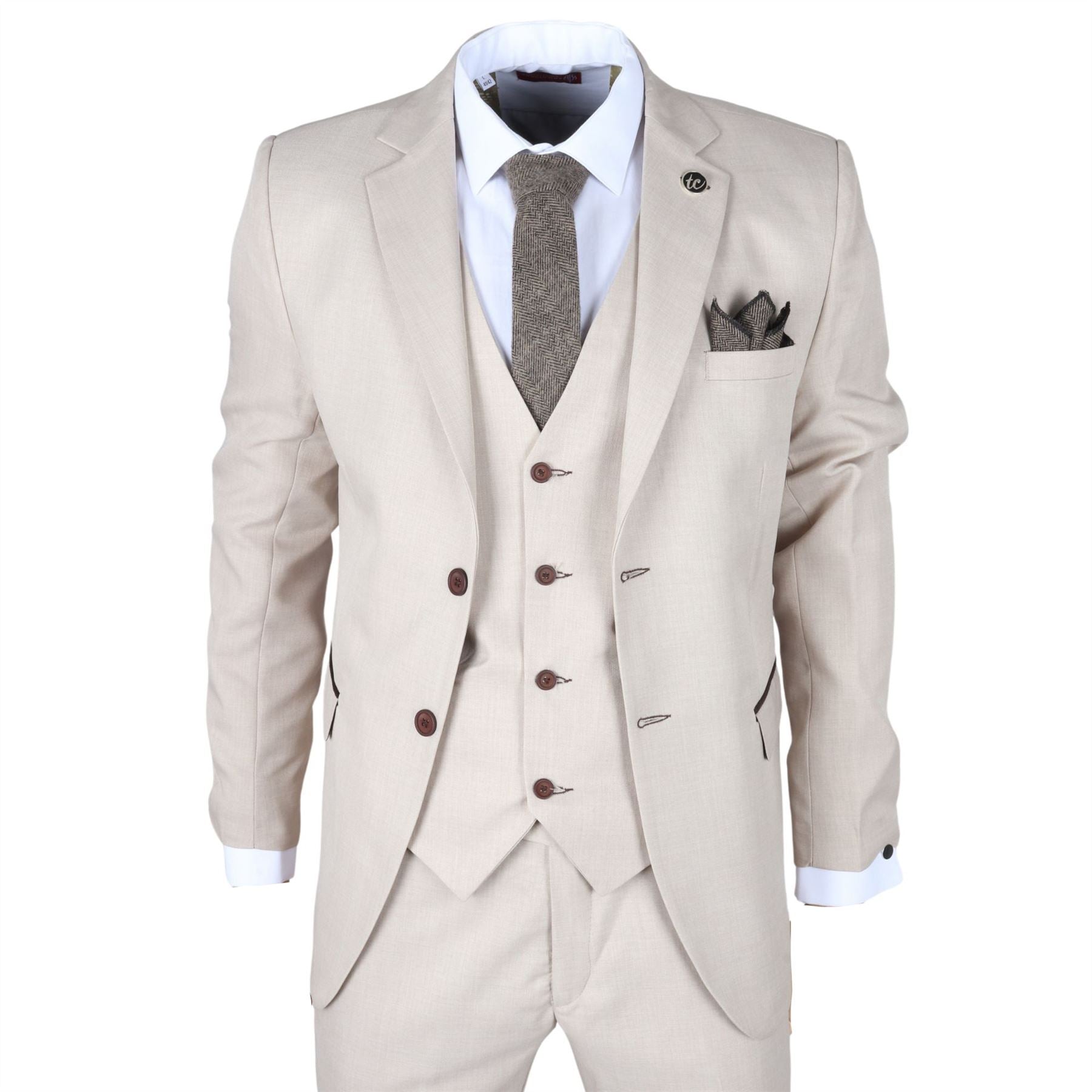 Men's Suit Beige 3 Piece Tailored Fit Wedding Formal Dress
