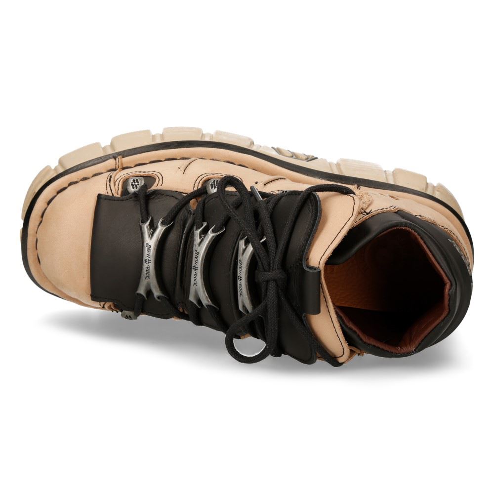 New Rock M-106-S40 Beige Leather Gothic Ankle Platform Boots
