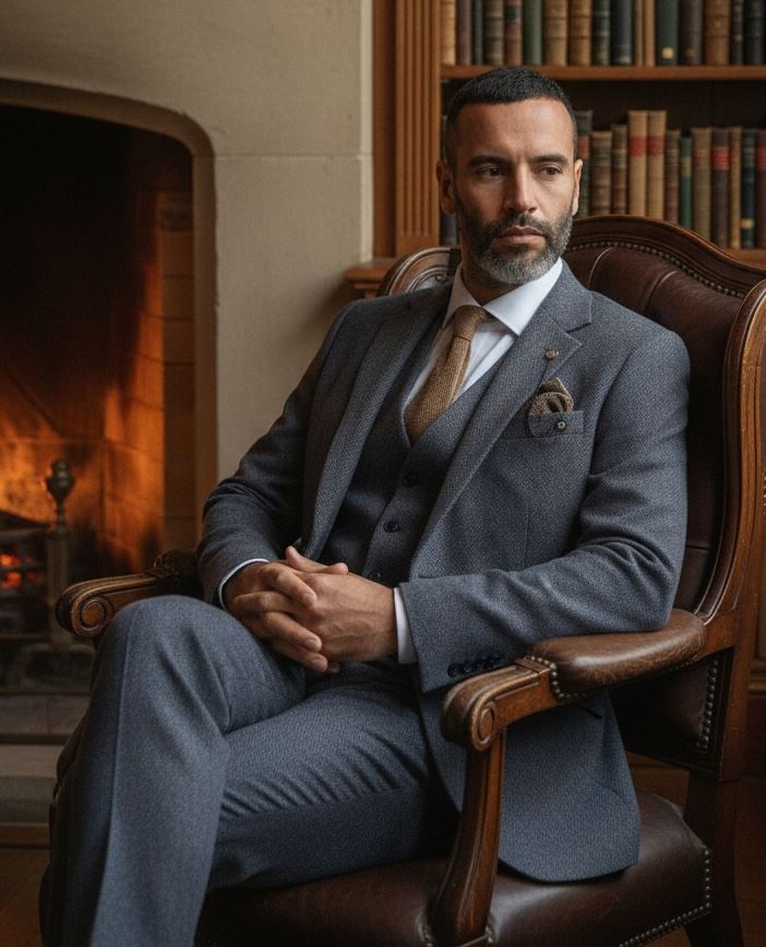 Thomas - Men’s Navy 3 Piece Wool Blend Tweed Suit