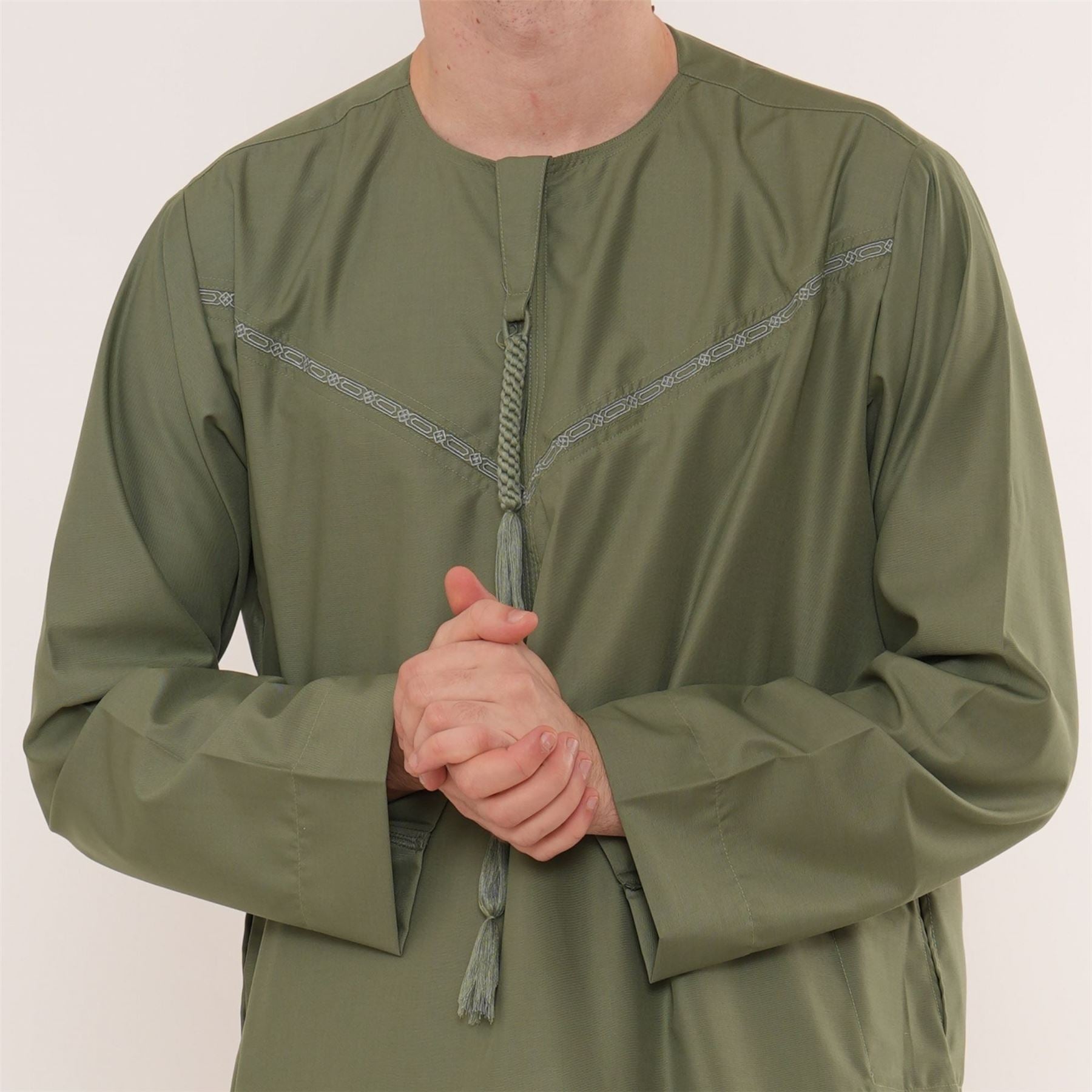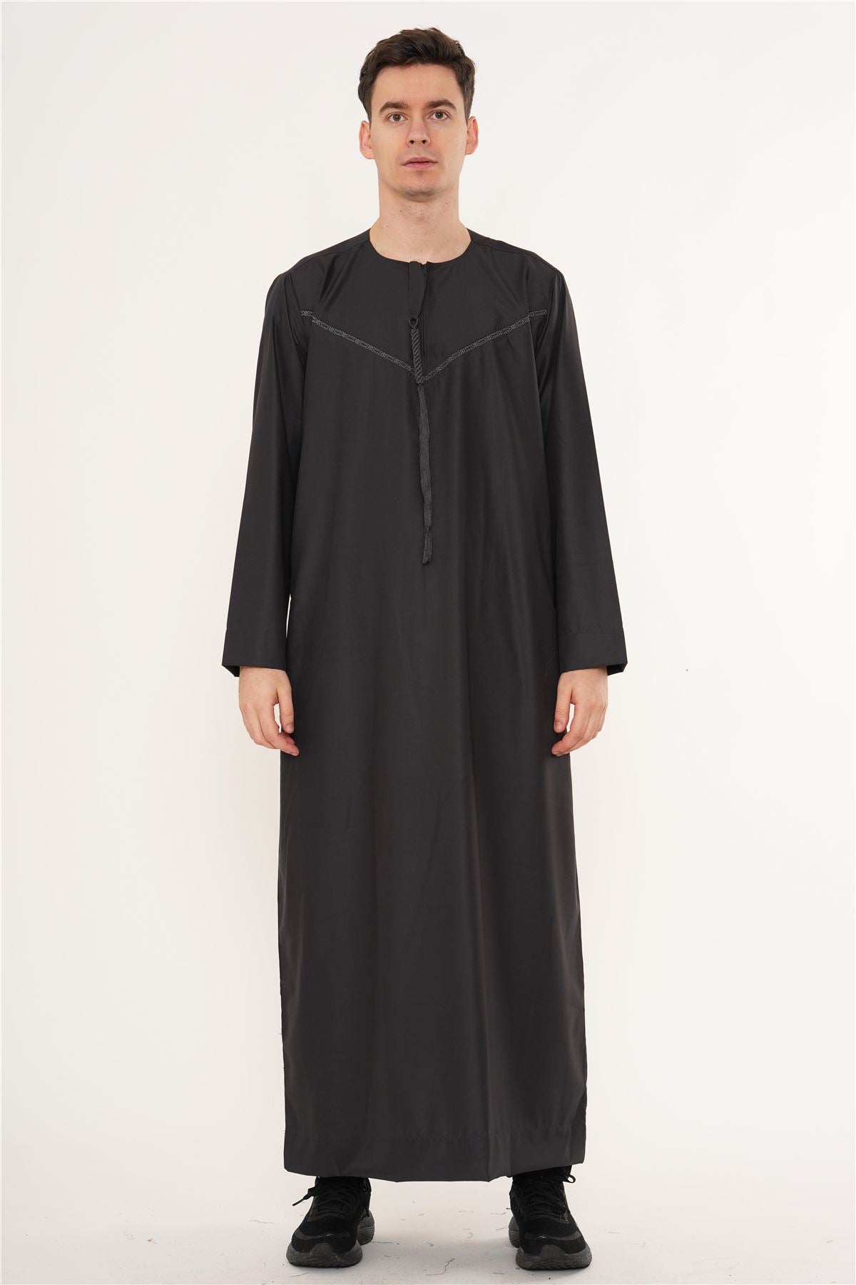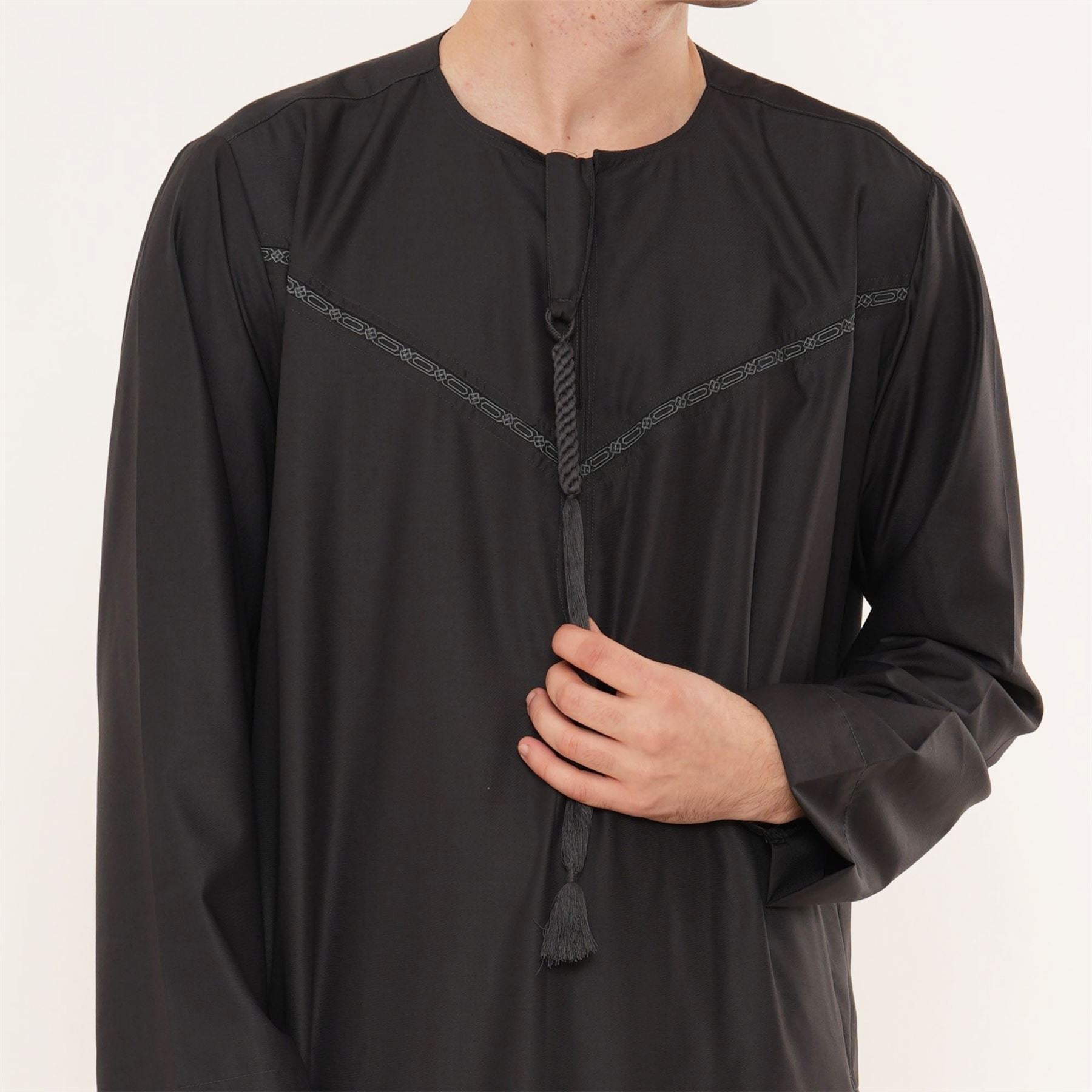 * Heritage-Inspired Design: Subtle Emirati and Omani jubba styling with a classic long-line silhouette and tasteful tassel trim, perfect for cultural gatherings and everyday wear