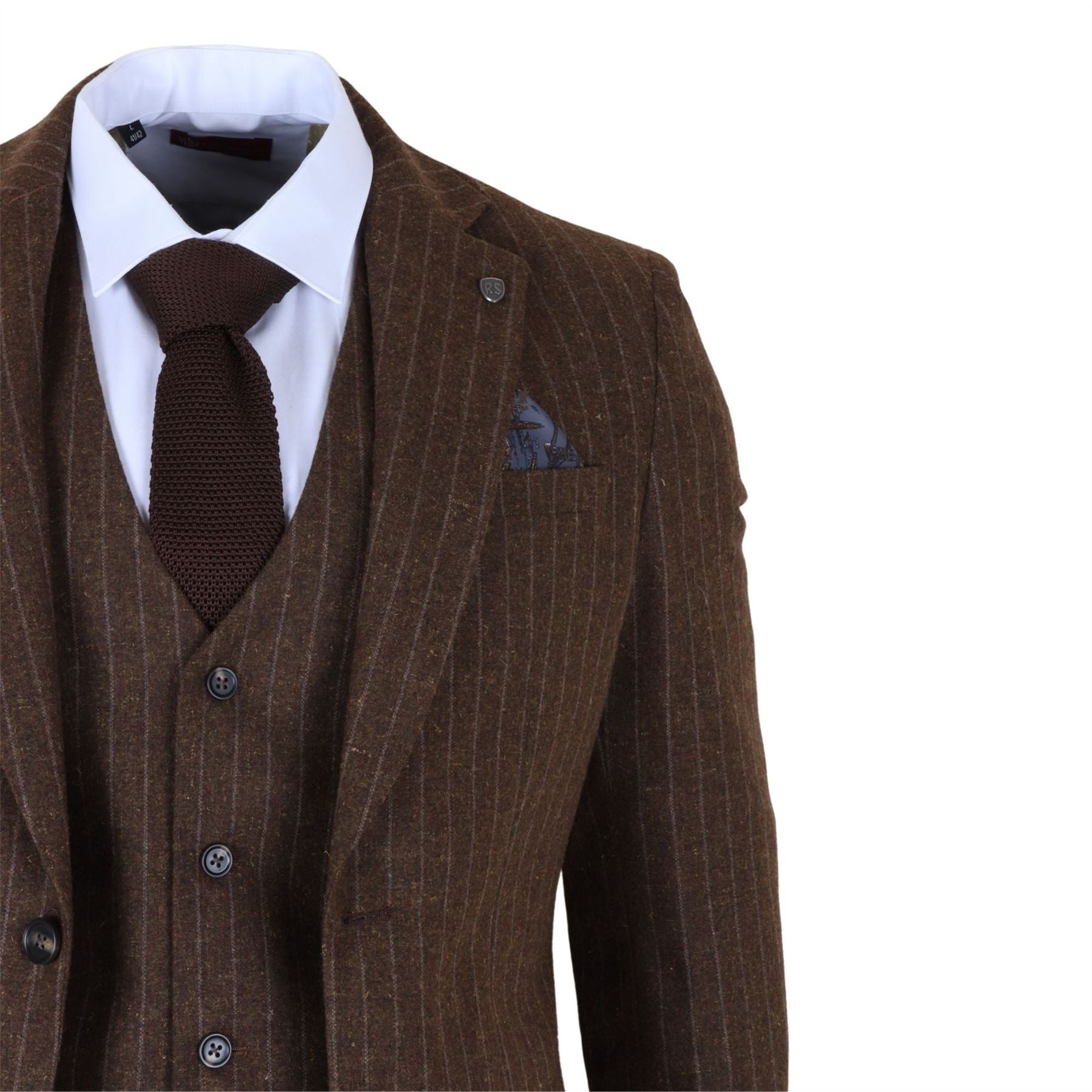 * Slim Fit Tailoring: This 3-piece brown pinstripe suit is designed with a slim fit cut, offering a sleek and modern silhouette that enhances your formal appearance
