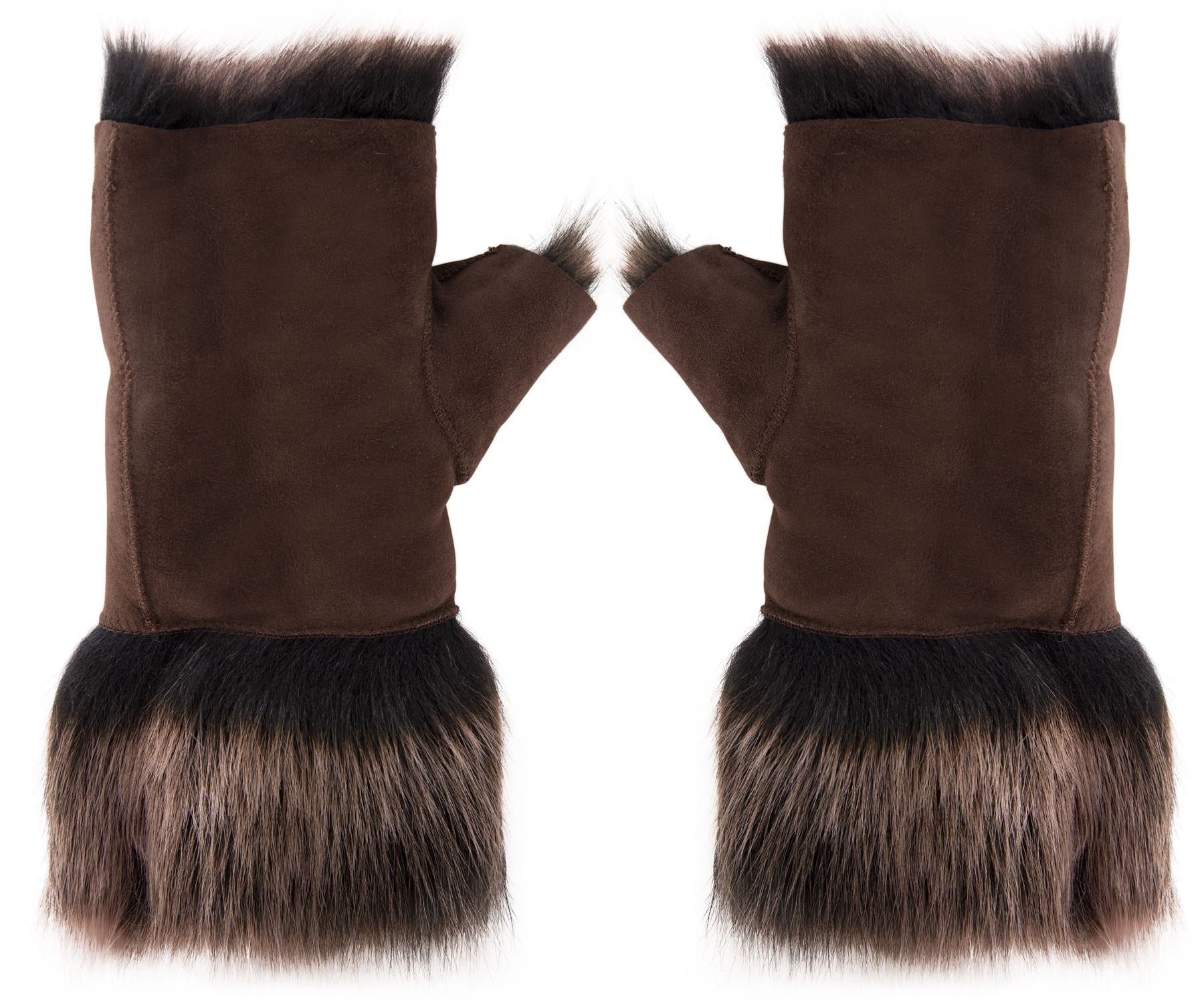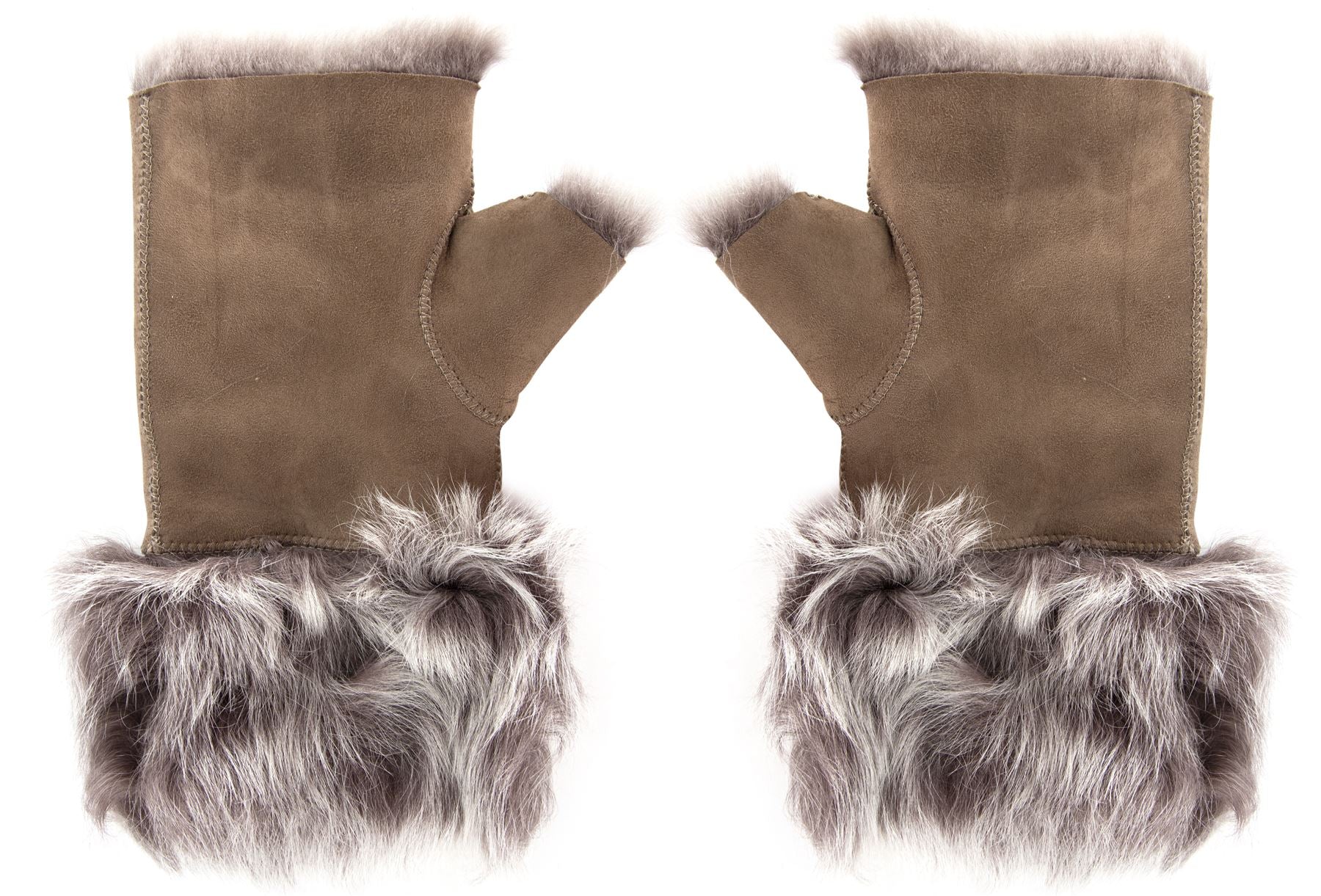 Women’s Suede Leather Shearling Lined Fingerless Gloves