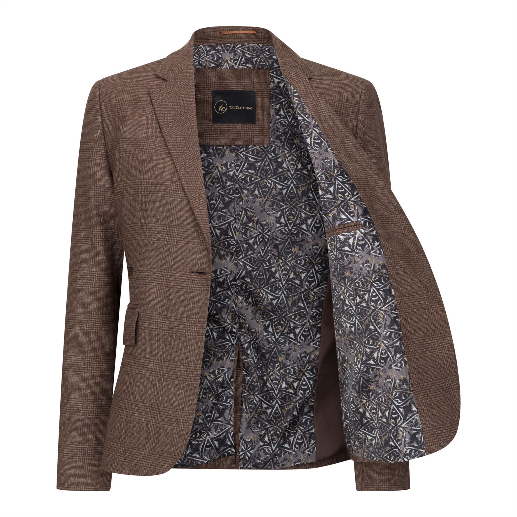 Women's Suit 3 Piece Brown Prince Of Wales Check Tailored Fit Business Formal Ladies Dress